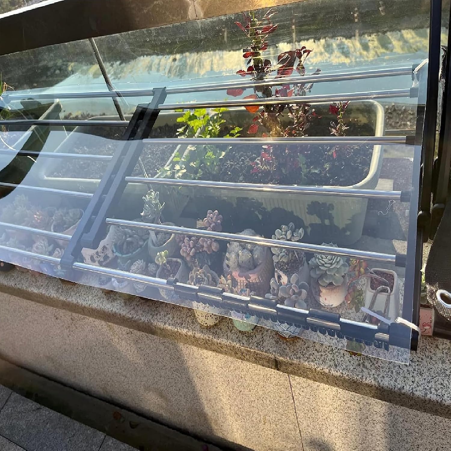 ***This clear and weatherproof plant cover is easy to bend and cut. Whether used as a replacement part for a greenhouse, cold frame, carport, or for DIY projects, this UV resistant sheet is ideal for every application - there's no limit to your creativity! ***Most importantly, it can survive the harshest conditions, maintaining excellent performance in temperatures ranging from -40°C to 120°C. The PC sheet is strong, and its impact resistance is 250-300 times that of ordinary glass, and it can withstand strong wind, heavy rain and hail. ***The transparent roof panels are waterproof and leak-proof, heat-insulating and cold-insulating. Whether it is hot summer or cold winter, it is a good choice. Product name: PC endurance board Material: Polycarbonate Thickness: 1mm Color: transparent Dimensions: Width x Length (WxL) Light transmittance: about 89% Product features: high transparency, no discoloration, high flame retardancy, high toughness Applicable occasions: roof, carport, canopy, greenhouse, sun room, lighting channel, LED light box, highway sound insulation wall, bus stop roof Package Contents: Top plate×1+screw friendly reminder: 1. The size is measured manually, there may be an error of 1~2cm, please refer to the actual product, please forgive me! 2. The products are all taken in kind, but due to light, equipment, shooting angle, computer resolution and other reasons, there may be some differences between the photos and the received kind. Please refer to type.