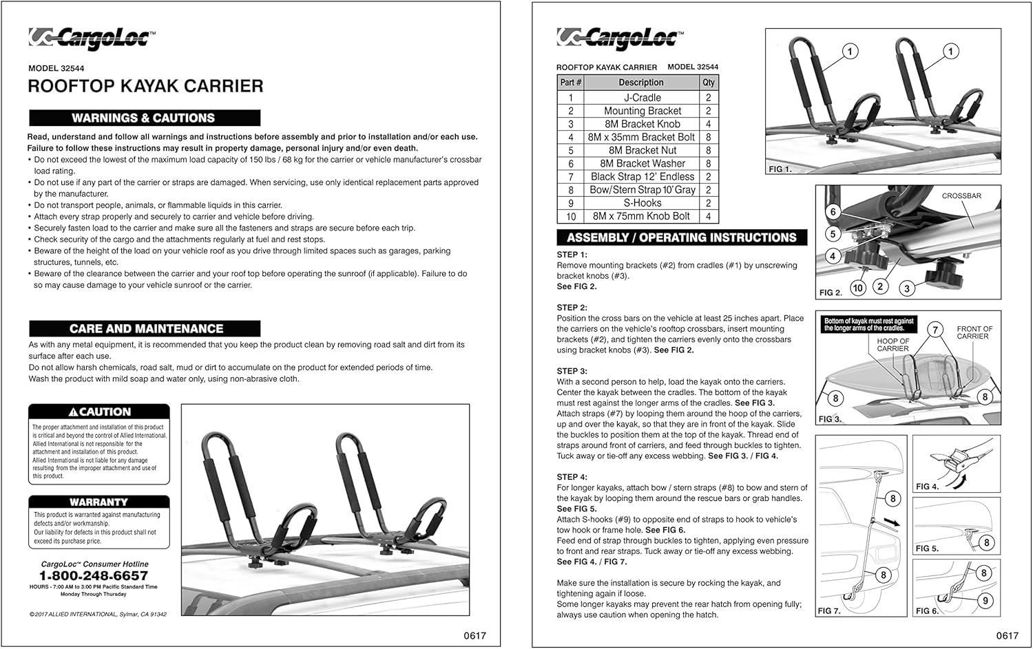 | Included Components | Rooftop J-Cradle Kayak Carrier - 150 lbs |