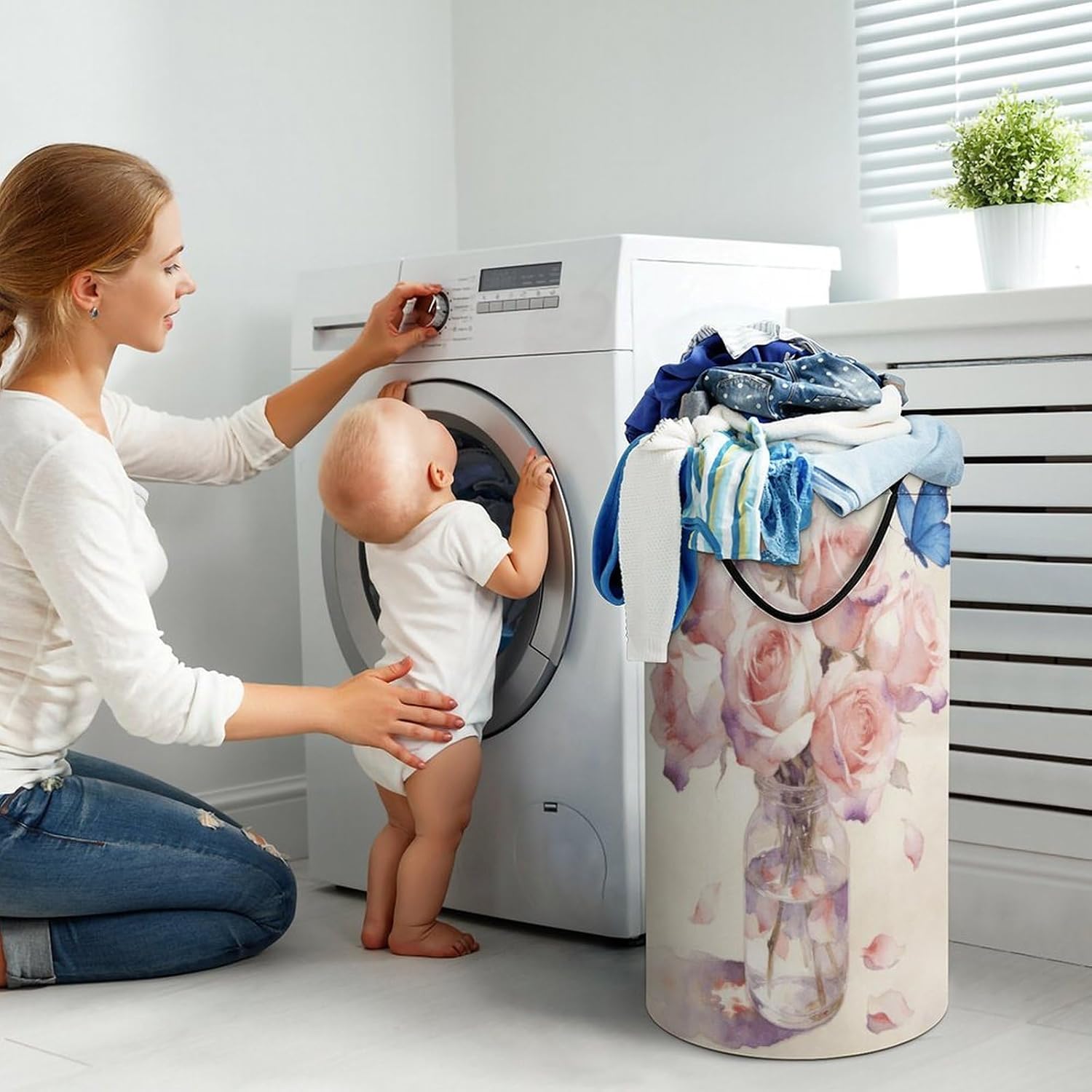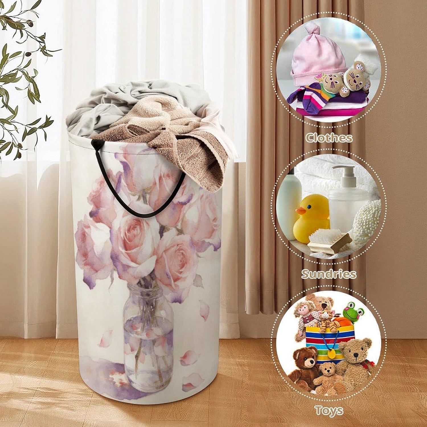The pattern of the Rose hamper is printed with exquisite patterns, which makes the product more attractive.Chic design allows it to be used in the living room to hold throw blanket, pillows, and reading materials, as well as in the bathroom for towels, or as a laundry hamper.The laundry hamper adopted collapsible design, equipped with handles. It is lightweight and portable for using, storing, and moving conveniently.Rose Clothes hamper is suitable to store dirty clothes washing, place in the room to store toys, and other household goods, keep the house clean and tidy. Perfect laundry hamper for home, office, closet organizer, bedroom, bathroom, college dorm, etc.Gets out of your way when you need it to. This storage basket or laundry hamper is a good gift, which not only meets everyday storage needs but also carries deep care and love, a perfect way to turn thoughtfulness into warmth.