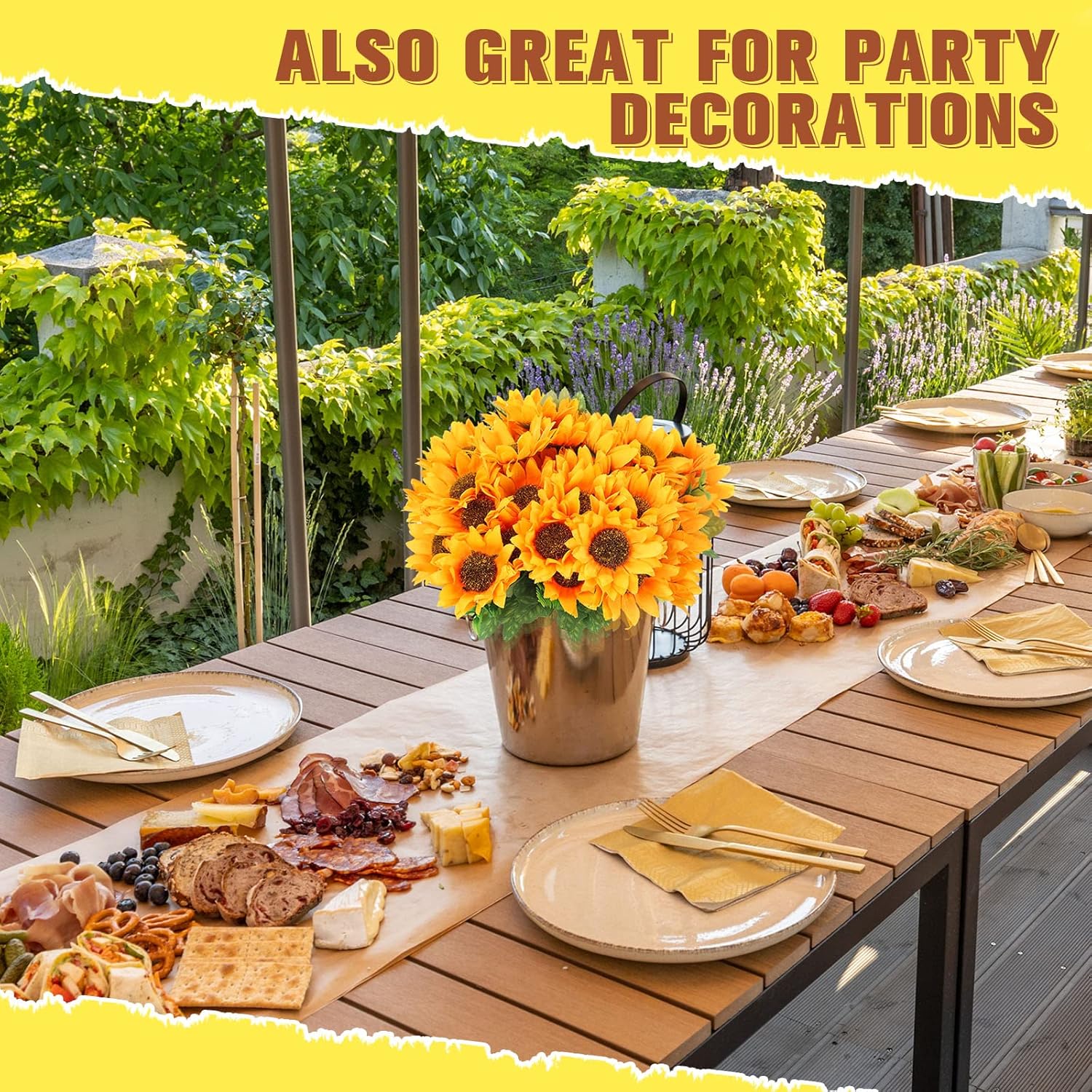 Features: Easy to care for: The faux sunflowers realistic are easy to care for, and require no maintenance, and can remain in full bloom, making them ideal for those who are too busy or lazy to water plants. Warm note: The petals and leaves of the artificial sunflowers with stems may become slightly deformed after long distance transportation, but you can easily adjust them to achieve a more visually pleasing effect. Specifications: Material: silk fabric, plastic and wireColor: as shown in the picturesSize: Height for each bunch: about 11.8 inches/ 30 cm Diameter of each artificial sunflower head: about 3.54 inches/ 9 cmPackage includes: 16 Bunches of artificial sunflower (each with 7 flowers)Notes: Manual measurement, please allow slight errors on size. The color may exist a slight difference due to different screen displays. Pointed and small items are included, please keep them away from little kids.