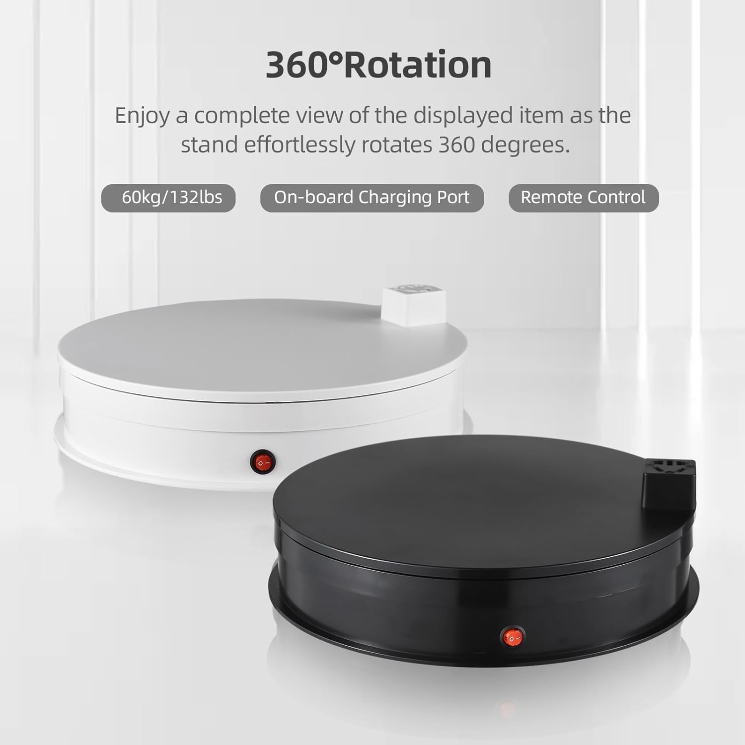 Specifications: Color: Black/ White(optional) Product material: ABS + Acrylic Power Supply: DC 15V Rated Power: 6W Output Voltage: 12V-16V Load Capacity: 60kg/132lbs Speed: 26-50s/turn Net weight: 1.8kg/ 63.5oz Product size: 30 * 8.5cm/ 11.8 * 3.34in packing list: 1 * Display Stand 1 * Remote Control 1 * USB Charging Cable