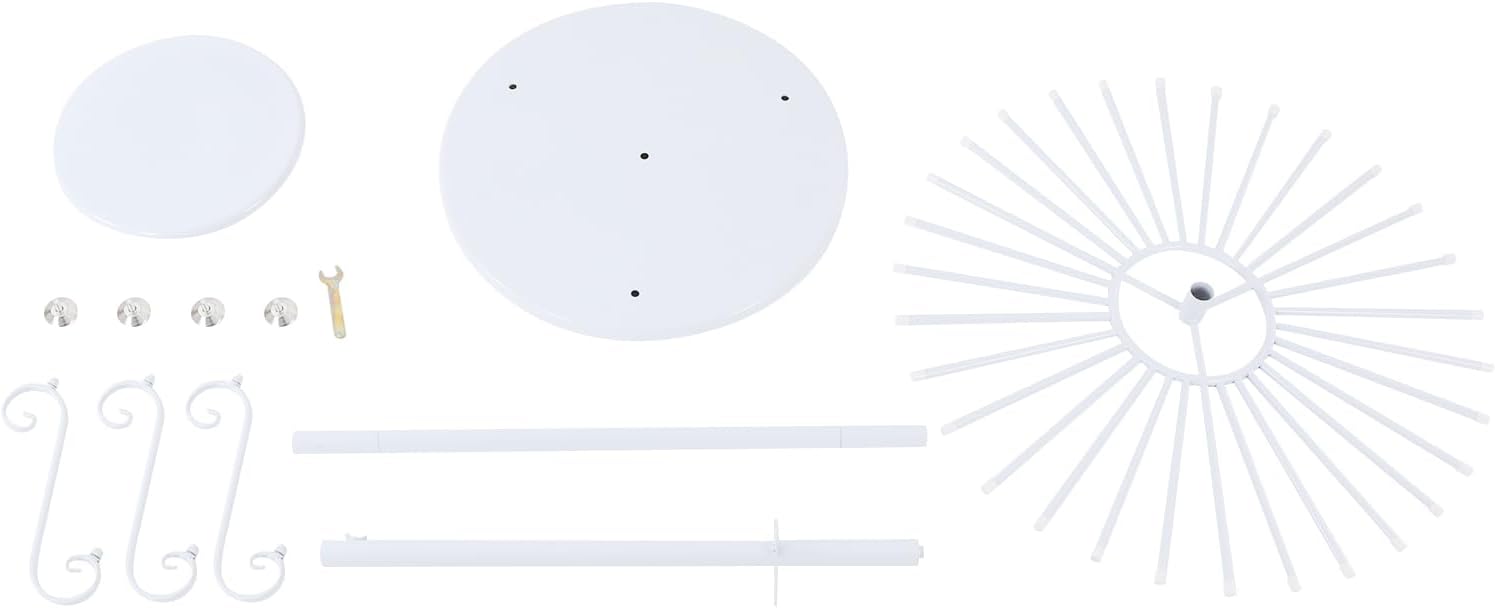 DescriptionThis Rotating scarf display stand is constructed from premium materials and features a robust structure, providing stable support and display for your scarves and other items. Its 360° rotating disk and 30 arms offer an ideal scarf display and storage solution for apartments, homes, and clothing stores. Additionally, the simple structure makes installation and cleaning easy and straightforward, saving you great effort and time.SpecificationsColor: WhiteMaterial: IronProcess: High-temperature Baking PaintNumber of Hanging Rods: 30Adjustable Feet Height: 1-2cm/0.39-0.79inMount Type: Free StandingAssembly Required: YesProduct Overall Height: 125cm/49.2inBase Diameter: 50cm/19.7inRotating Rack Diameter: 70cm/27.6inTop Plate Diameter: 30cm/11.8inPackage Size: 70*70*8cm/27.56*27.56*3.15inGross Weight: 6kg/13.23lbsNet Weight: 5.7kg/12.57lbsPackage Included1* Scarf Display StandOther Needed AccessoriesNotes1. Please check the size carefully before ordering.2. Please note that this product does not include scarves or other display items.