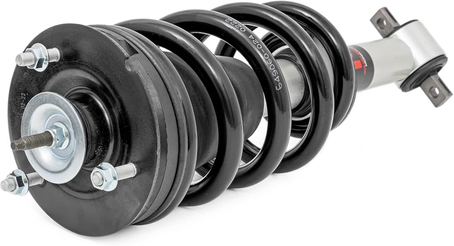 Improved Stance, Balance, and Handling. If you want to improve your vehicle's on-road performance and off-road capabilities, Rough Country's M1 Loaded Strut Kits are the way to go. Our M1 Loaded Struts help stabilize your vehicle's movements, enhancing control when you turn, brake, accelerate or ride over uneven road surfaces. As an adjustable ride height strut, these M1’s keep your suspension from overextending, providing a more consistent ride. Made for rugged off-road performance, our M1 monotube struts have a 46mm digressive piston for a more stable ride, preserving the smooth ride quality you need.Quality Construction. Rough Country's M1 Loaded Struts have been engineered to give you the most reliable performance, increased driving comfort, and all-around performance for your vehicle. Made from 2" seamless extruded tubing and feature durable vulcanized natural rubber bushings. They're also zinc plated for resistance against the elements. Plus, they're adjustable in height. Utilizing multiple grooves in the strut body the spring perch can be raised or lowered. So whether you're looking to add a little extra clearance for off-roading or just want your ride to sit a little higher, our M1 Monotube Loaded Struts are the perfect solution.Installation and Warranty. This bolt-on installation requires just basic tools and about 2-3 hours to complete. Our Strut Kit is backed with our 3-year replacement warranty towards manufacturer defects. As such, the product is protected from structural and workmanship damage after the date of purchase. With our industry-leading warranty, give yourself peace of mind when using Rough Country's products! Includes M1 Adjustable Monotube Loaded Struts and hardware.