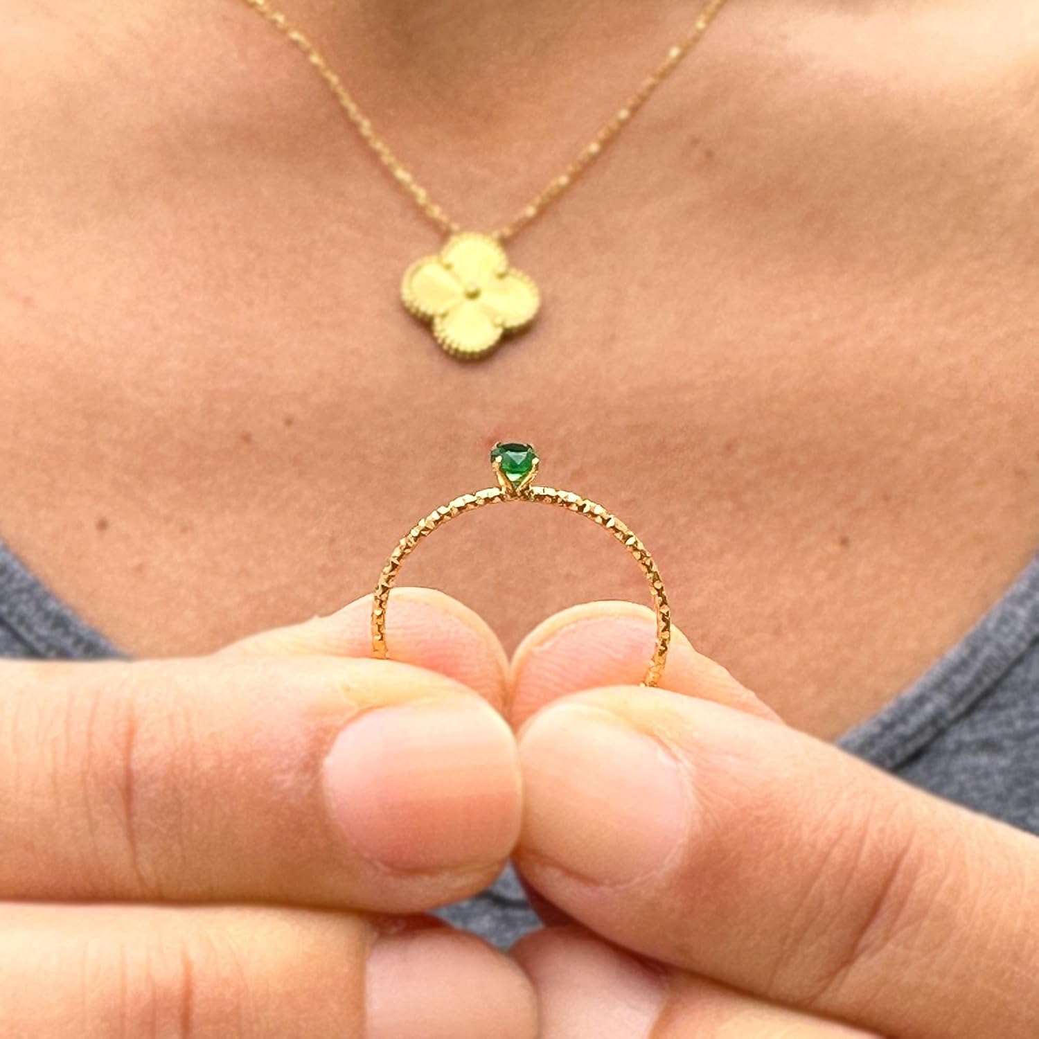 Introducing our exquisite Round Cut Natural Green Emerald Ring, a perfect blend of timeless elegance and minimalist design. Crafted from 14k solid yellow gold, this beautiful ring is ideal for engagements, weddings, or as a thoughtful gift for a special occasion. The band, made from high-quality 14k solid yellow gold, offers a warm and luxurious contrast to the vivid emerald. Its minimalist design ensures a sleek and elegant look, making it perfect for everyday wear or special occasions. The slender band adds a touch of sophistication while maintaining a comfortable fit. This ring's refined simplicity makes it versatile enough to be worn alone as a striking statement piece or paired with other rings for a more layered look. The combination of the radiant green emerald and the warm yellow gold creates a harmonious and timeless aesthetic.