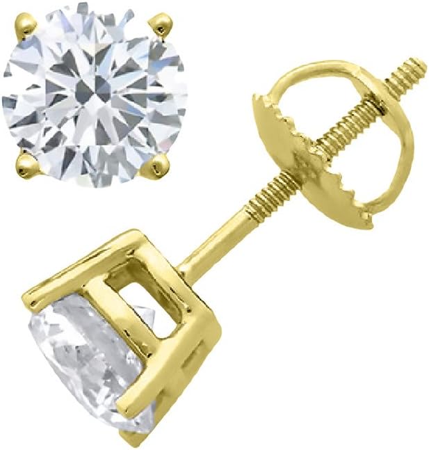 PARIKHS Round Diamond stud in Popular Quality in Screw Back (Color - JKLM, Clarity - I2), Hand-set in New York City with 14K White Gold, Yellow Gold & Rose Gold 4 Prong setting. The Screw Back uses a post that is threaded enabling the backing to work like a screw which can be rotated until it is fully screwed onto the ridges for a tight fit. They are an excellent solution as an earring backing for an active woman who likes to wear valuable earrings. They provide maximum safety and peace of mind. PARIKHS offers a wide variety of selection in genuine diamonds for studs, Pendants and Sets to suit everyone's needs. Please check our other listings with different diamond quality: Plus - I3-I4, Promo - I3, Popular - I2, Prime - I1, Premium - SI2, Prestige - SI1, Privilege - VS2 Please note that 0.04ctw to 0.07ctw are very small baby size diamond stud and is suitable for the second or third ear hole. IGI Certified from 0.70 ctw & above by GIA Certified Graduate Gemologists. PARIKHS offers a specialized customer service team that is available to answer any product questions before, during or after the purchase. If not satisfied for any reason, you may return for a full refund within 30 days.