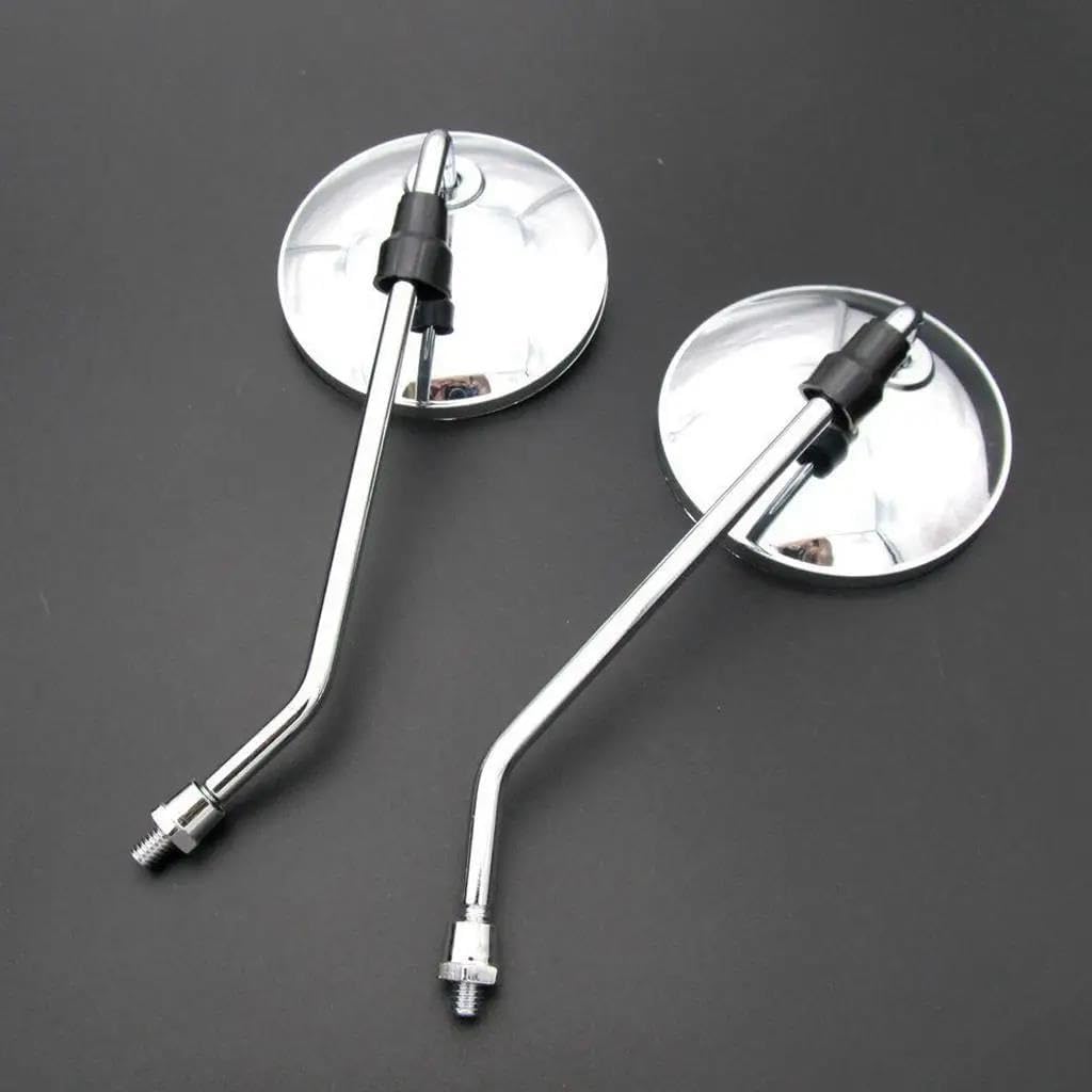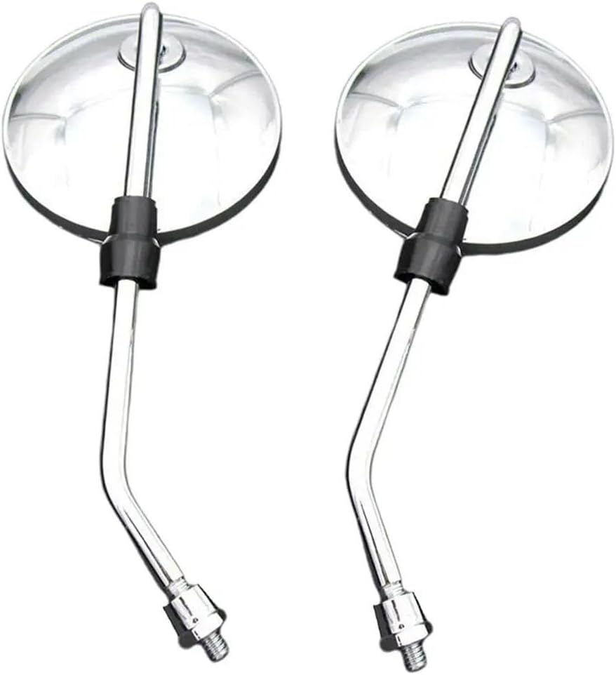 Enjoy a clear rear view and increase driving safety with these motorcycle rearview mirrors. Simple and classic appearance, attracting the attention of everyone on the road. Motorcycle Back View Mirror Universal fit for all the motorcycle, electric bicycle and moped with 8mm mirror thread. Material: Metal Mirror Head Diameter: 10cm Rod Length: 20cm Screw Diameter: 8mm Large glass lens, offer you a wider view, easy to see the upcoming cars. Quantity: 1 pair