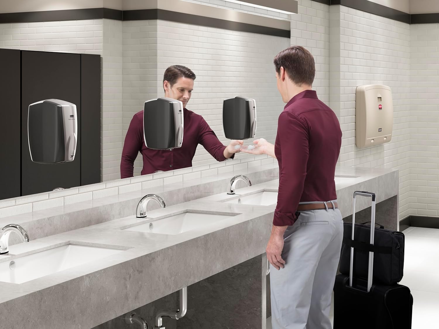 The AutoFoam Touch-Free Skin Care System provides the highest quality foam soap in an attractive touch-free dispenser that delivers superior cost savings. This dispenser has the industry-leading battery life of up to 3 years or 120,000 hand washes. The AutoFoam unit is available in a variety of color combinations to enhance the image of any washroom decor.