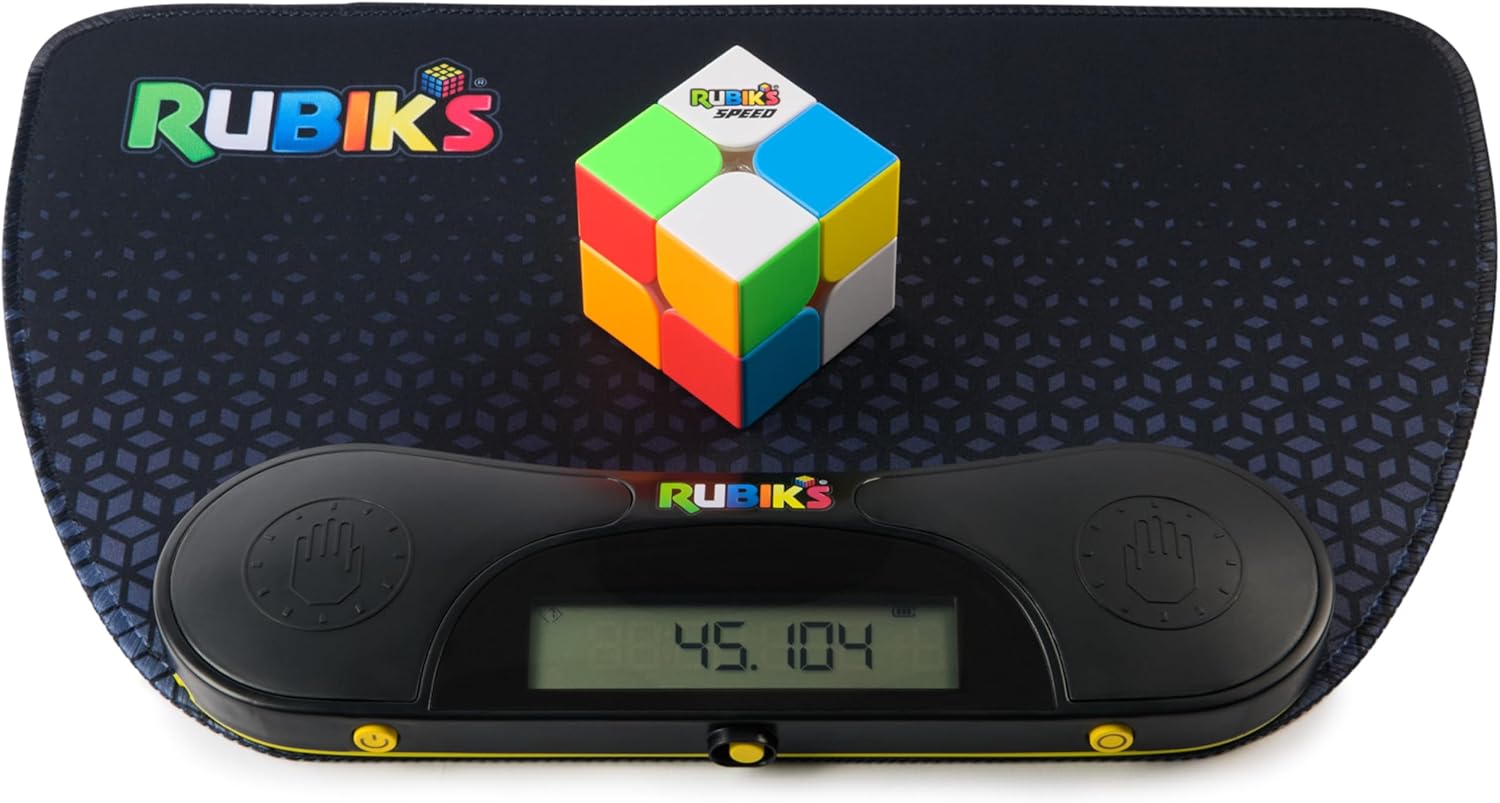 Get WCA competition-ready with the right speedcubing accessories from Rubik’s Cube. The Timer Mat accurately keeps time down to the millisecond. The 13.75”x9.2” Rubik’s-branded neoprene pad includes an ergonomic timer with wide, easy-to-read display for fast grabbing and precision timing. Toggle between Inspection or Normal mode, then start with both hands touching the sensors. The timer begins as soon as your hands leave the mat. Replace hands over sensors again to stop time. Use the Timer Mat on its own or connect the Rubik’s Timer Stand or Mini Timer Stand for a larger display – also compatible with most 3rd party stands. Includes 2 replaceable AAA batteries. A must-have for kids who love problem solving, fidgets and sensory toy collectors, the aim of the Official Rubik’s Cube is to scramble, then twist and turn the spinning sides back to its original state, with every side having one solid color. Bring Rubik’s Cubes, games, and puzzles on the road as an entertaining and educational car game when looking for road trip activities for kids. Shop more from Rubik’s Cube for the ultimate collection of fidget cube toys for ages 8-13, gifts for men, gifts for women, and gifts for teens.