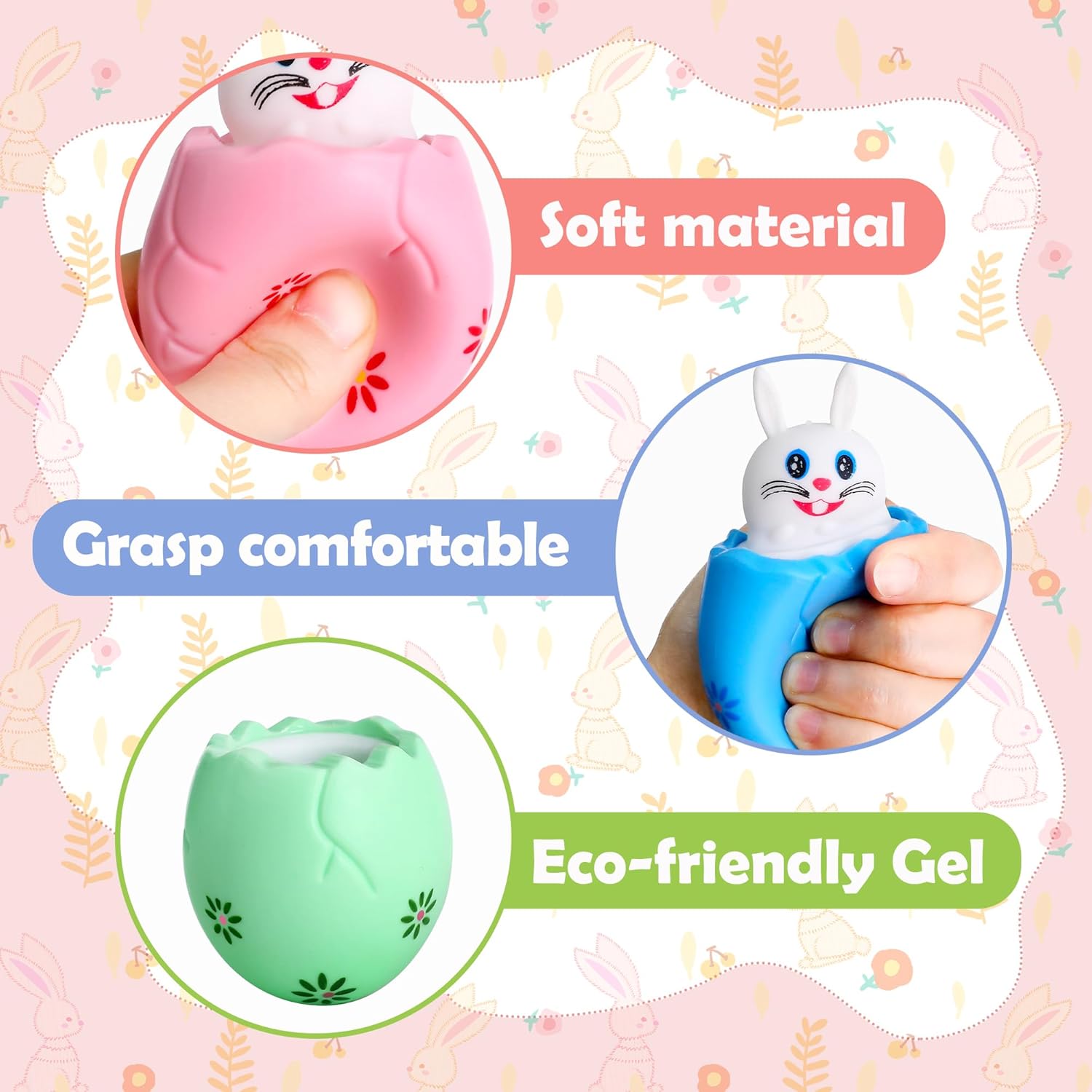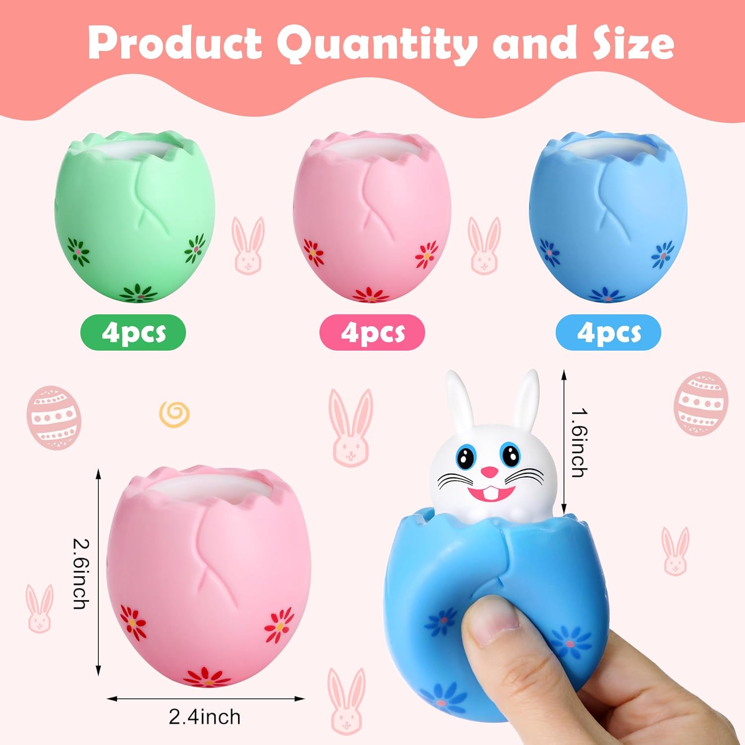 Specifications: Color: as picture shown Size: about 2.6 x 2.6 inch Material:TPR Package includes: 12 x Easter egg stress toy Features: (1)Whether for a birthday party, a classroom reward, a stress reliever at work, or casual play at home, the radish rabbit stress fidget toys are a hit on all occasions. (2)These rabbit stress fidget toys can be kept on your desk, in a backpack, or even in the car to provide playful fun no matter where you go. Notes: Manual measurement, please allow slight errors on size. The color may exist a slight difference due to different screen displays. It's recommended to use under the supervision of adults in case of choking risk.