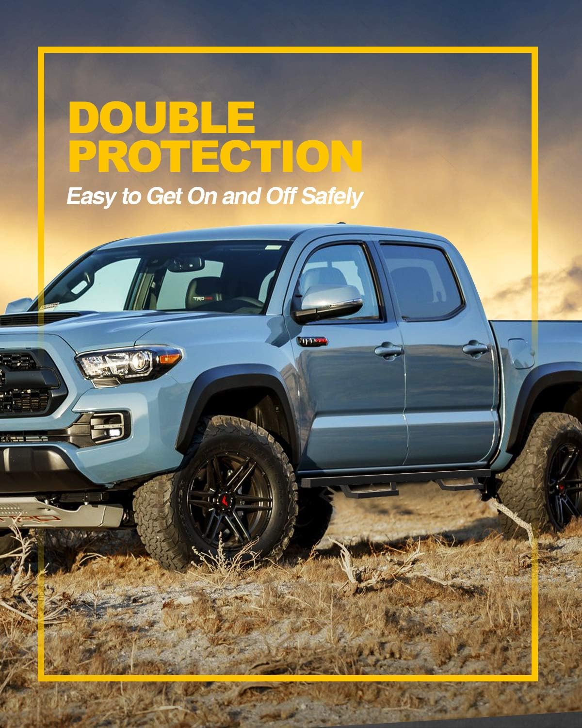 SPECIFICATION:Condition: Brand NewFitment Type: Direct ReplacementPlacement on Vehicle: Left Right RearManufacturer Warranty: LifetimeNumber of Pieces: 2Mounting Hardware Included: YesShape: RectangularColor: BlackMaterial: Q235AFinish: PolishedColor: Black powder coatedFitment Type: Performance/CustomType: Bar Side StepFITMENT :Replacement For 2005-2023 Tacoma Double Cab Pickup Truck 4 Door(Note : Please enter your vehicle's year/make/model/Trim/Engine and check the fitment in "My Garage")PACKAGE INCLUDED:2 * Crew Cab Running Boards1 * Mounting Hardware SetNOTE:Please double check the part number of your item, matching information is for reference only.Please enter your vehicle's year/make/model and then check the fitment.