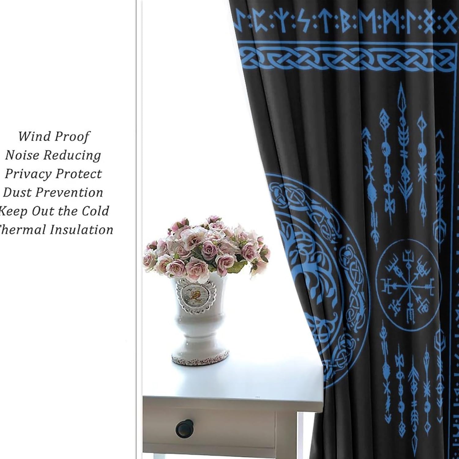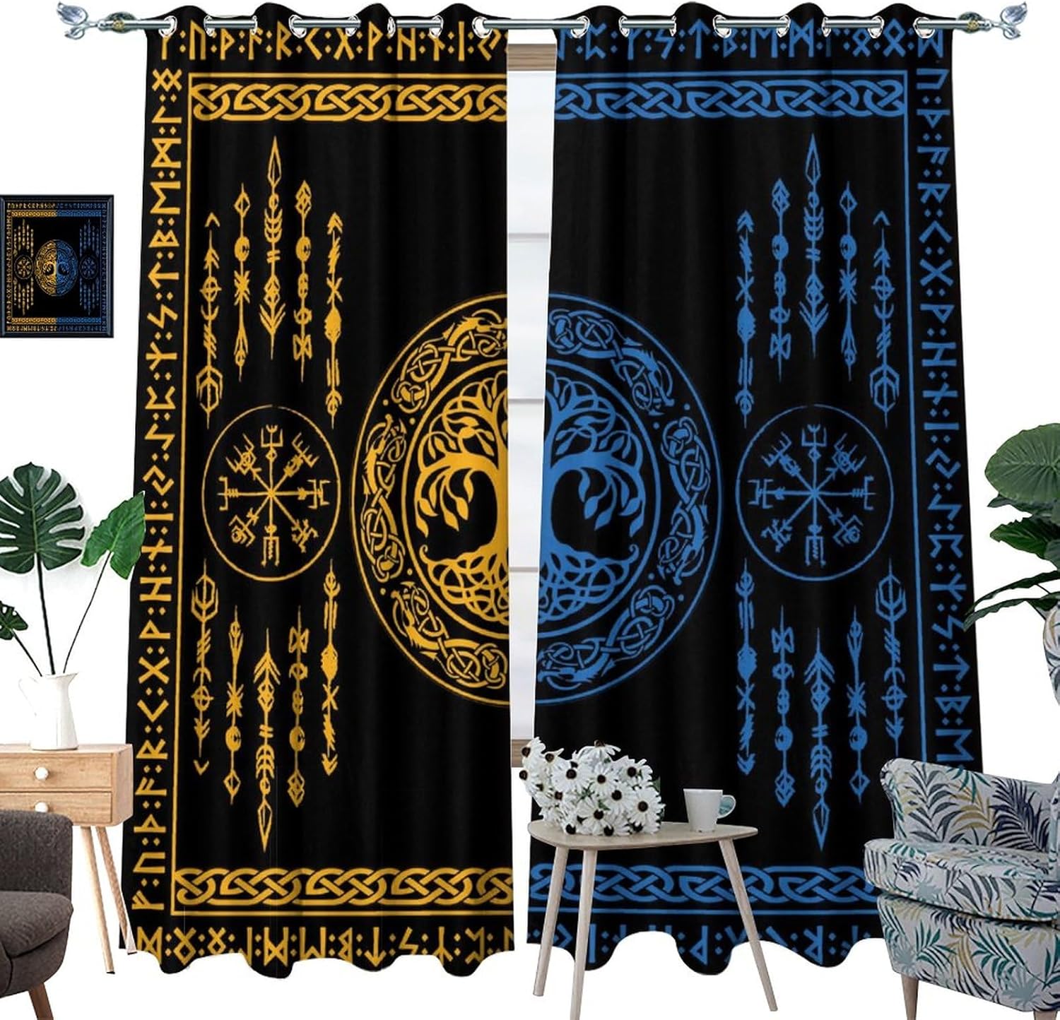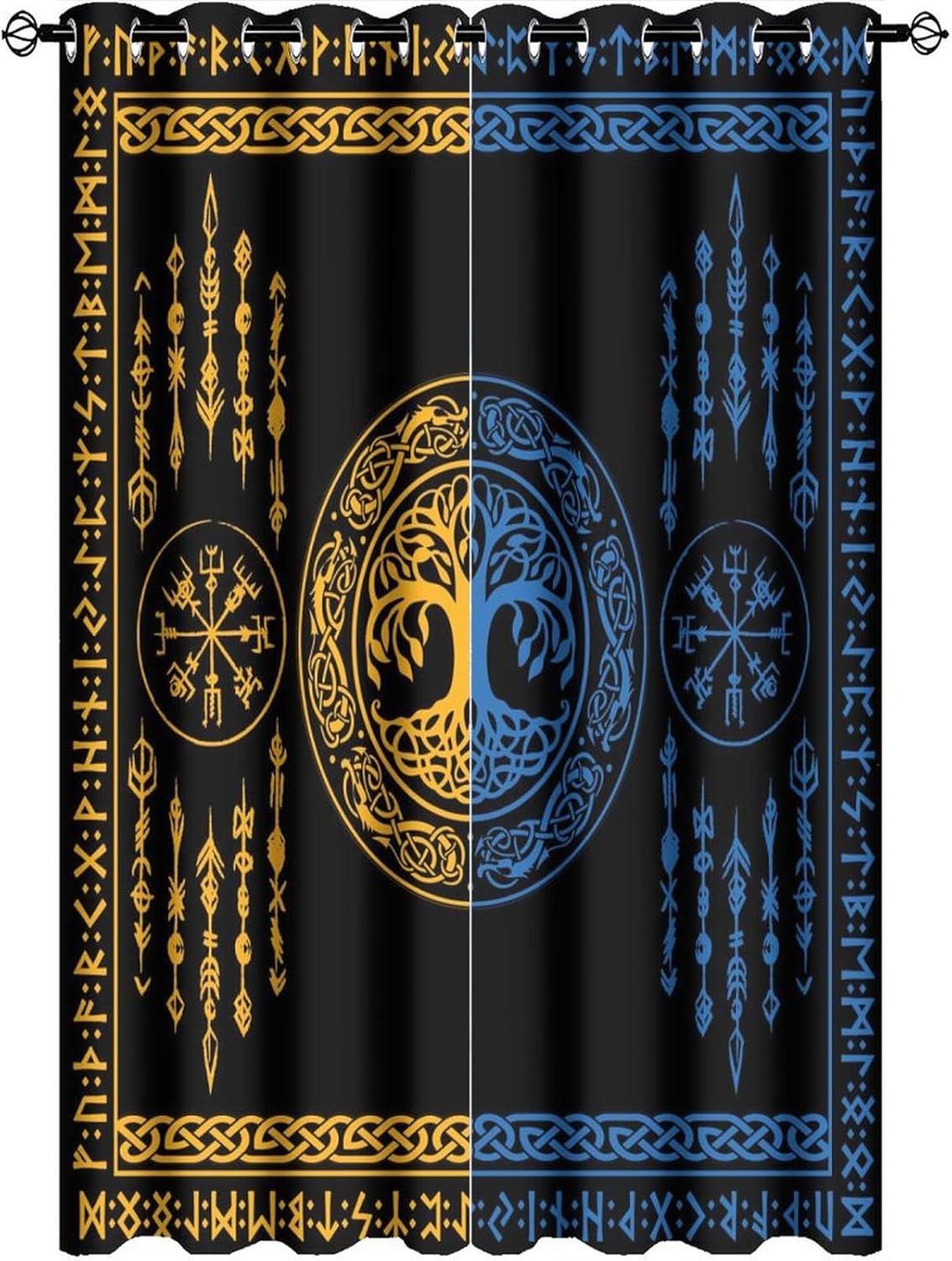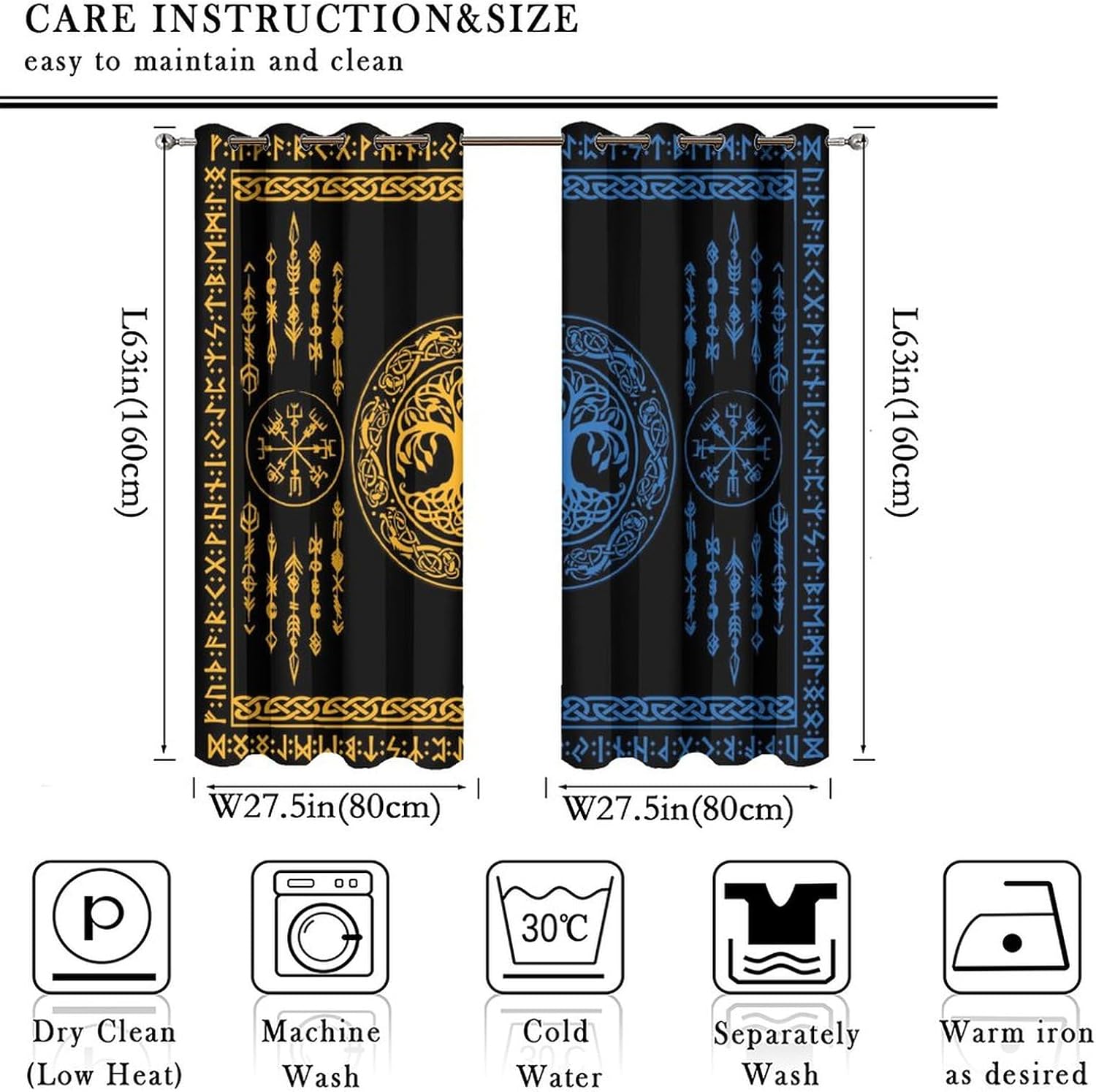 JretailAx Rustic Viking Tree of Life Patterned Blackout CurtainsThis Rustic Viking Tree of Life Curtains liven up your indoor or outdoor spaces with a sense of airiness and beauty.Packaging & Size: Includes 2 panels, each panel:45" length × 21" width (114cm × 53.5cm).Total size: 45"L × 42" W (114cm × 107cm), Includes 2 panels, each panel:54" length × 21" width (137cm × 53.5cm).Total size: 54"L × 42" W (137cm × 107cm), Includes 2 panels, each panel:63" length × 21" width (160cm × 53.5cm).Total size: 63"L × 42" W (160cm × 107cm), Includes 2 panels, each panel:63" length × 27.5" width (160cm × 70cm).Total size: 63"L × 55" W (160cm × 140cm), Includes 2 panels, each panel:63" length × 31.5" width (160cm × 80cm).Total size: 63"L × 63" W (160cm × 160cm), Includes 2 panels, each panel:72" length × 31.5" width (183cm × 80cm).Total size: 72"L × 63" W (183cm × 160cm), Includes 2 panels, each panel:63" length × 36" width (160cm × 91.5cm).Total size: 63"L × 72" W (160cm × 183cm), Includes 2 panels, each panel:84" length × 26" width (214cm × 66cm).Total size: 84"L × 52" W (214cm × 132cm), Includes 2 panels, each panel:63" length × 42" width (160cm × 107cm).Total size: 63"L × 84" W (160cm × 214cm), Includes 2 panels, each panel:84" length × 42" width (214cm × 107cm).Total size: 84"L × 84" W (214cm × 214cm),Workmanship & Design:Each curtain is machine-made and neatly sewn with no loose threads.Beautiful patterns, clever colour matching and advanced printing and dyeing processes for vibrant, fade-free colours.This Vintage Ancient Nordic Mythology Symbol Tree of Life Curtains is suitable for: living rooms, bedrooms, boys' rooms, girls' rooms, nurseries, dining rooms,etc.Care instructions.Machine wash in cold water or hand wash, do not bleach, iron at low temperature.Customer service.24 Hours customer support.