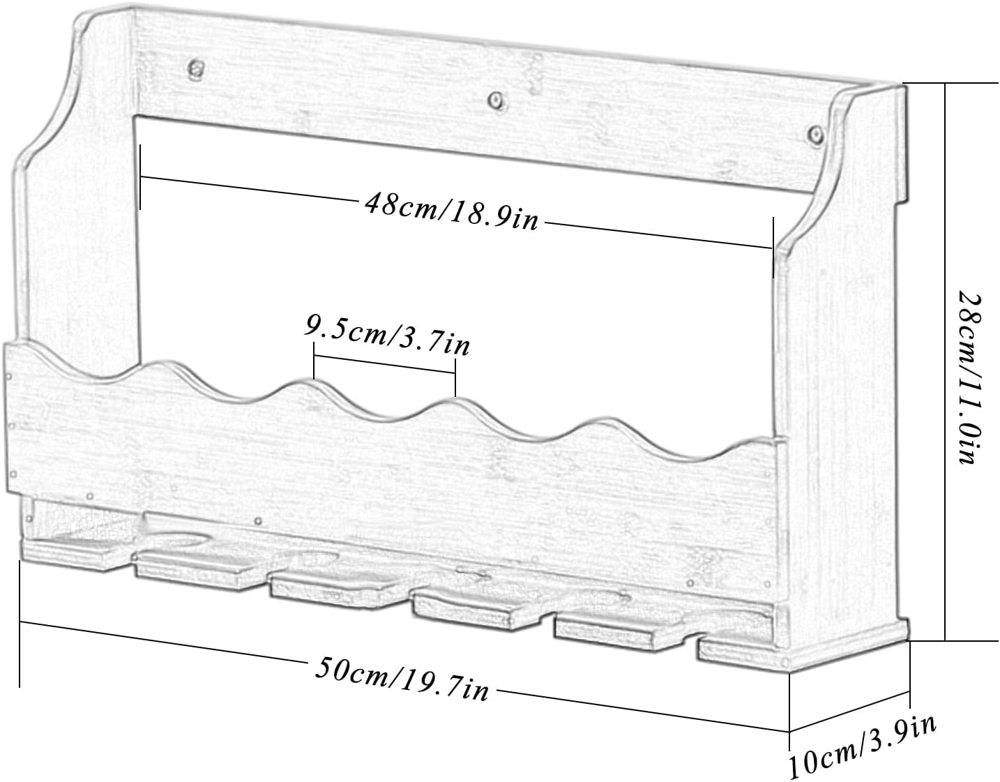 ➽ Wine Rack Wall Mounted ❈ Our wine glass rack is perfect for both home and commercial use. You can apply it to your own house, bar, hotel, and commercial cellar for an excellent wine-drinking time with your family and friends. ❈ Our Advantage: ✔ Extensive Load Capacity ✔ Universal Goblet Holder ✔ Easy to Install ✔ Wide Application ❈ Specification: ● Material: Bamboo ● Size: 50x10x28cm ❈ Package Includes: ◆ 1 x Wine Display Storage Rack ◆ 1 x Mounting accessories ❈ Matters needing attention: ● Due to the difference of camera lighting and different monitors, the actual color may be slightly different from the picture. Please refer to the actual color. ● The size is manually measured, and there may be errors depending on the measurement method.