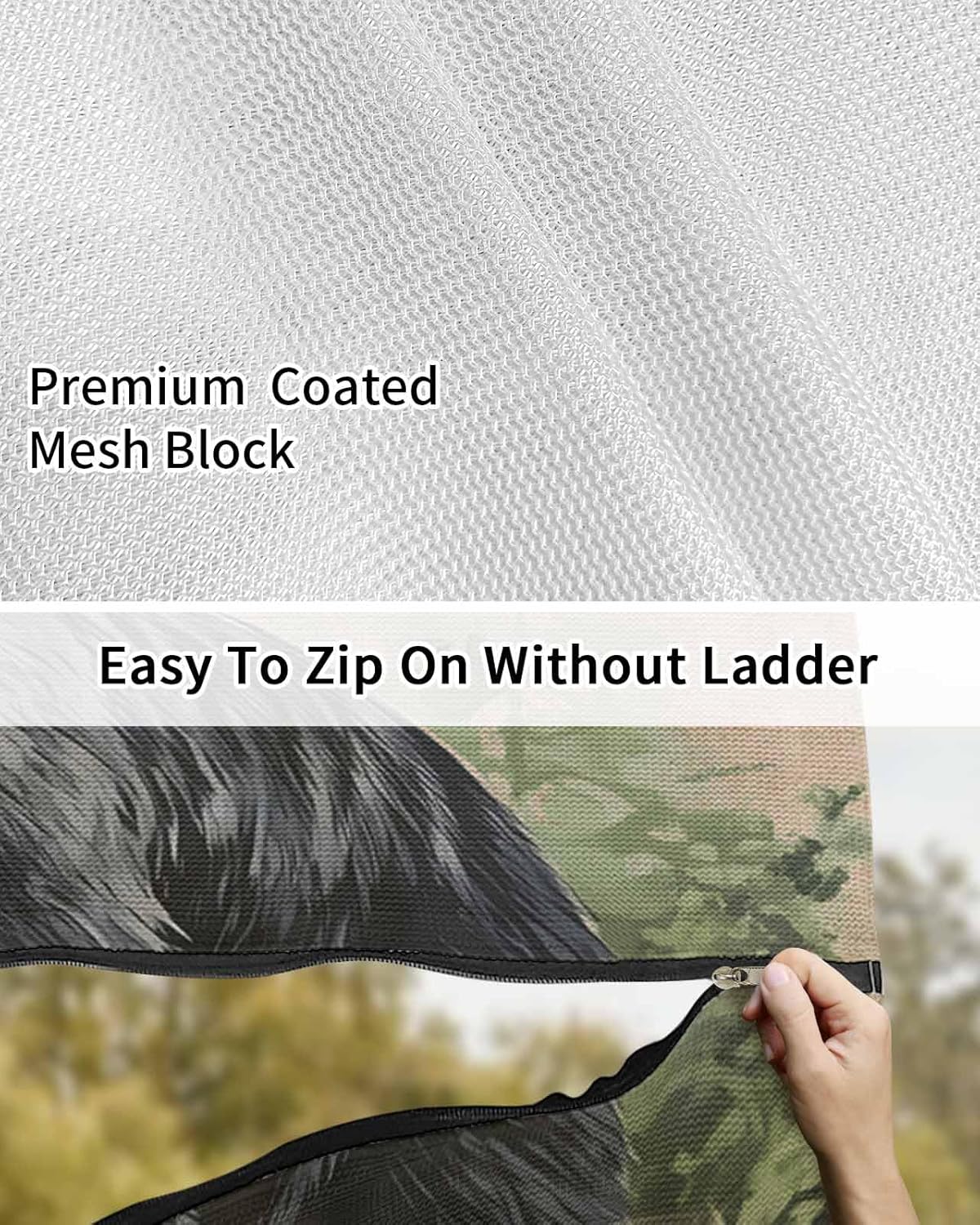 Create your cool outdoor space and have a great outdoor relaxing time with our RV Awning Sun Shade.Size9x7 feet = 108 x 84 inches (4 Grommets, 4 plastic stakes, and 4 bungee cords)9x13.3 feet = 108 x 160 inches (8 Grommets, 8 plastic stakes, and 8 bungee cords)9x15.3 feet = 108 x 184 inches (8 Grommets, 8 plastic stakes, and 8 bungee cords)Package1 x RV AwningPlastic StakesBungee CordsShape: RectangularHow to Install1. Slide the poly-cord into the awning slot2. Move the mesh shade3. Fix the awning with bungee balls and stakes4. Finished installation within minutesUniversal FitDesigned to work seamlessly with most standard RV, travel trailer, and camper awnings. Available in multiple sizes to ensure a perfect, snug fit.Reinforced for ReliabilityFeatures heavy-duty, rust-proof metal grommets spaced optimally for secure attachment, along with double-stitched seams at all stress points for exceptional strength and longevity. Built to handle the elements season after season.Visibility & ComfortThe mesh effectively reduces harsh sunlight and glare, making it easier on your eyes for reading, using devices, or simply relaxing.Your Outdoor Living RoomInstantly creates a shaded, inviting extension of your RV. Perfect for setting up chairs and a table for meals, enjoying morning coffee, reading a book, or socializing with fellow campers – all in cool comfort.Ideal Patio DecorThe outdoor sunshade is available in multiple colors and sizes to suit your different styles and needs, making it an ideal choice for outdoor decoration.