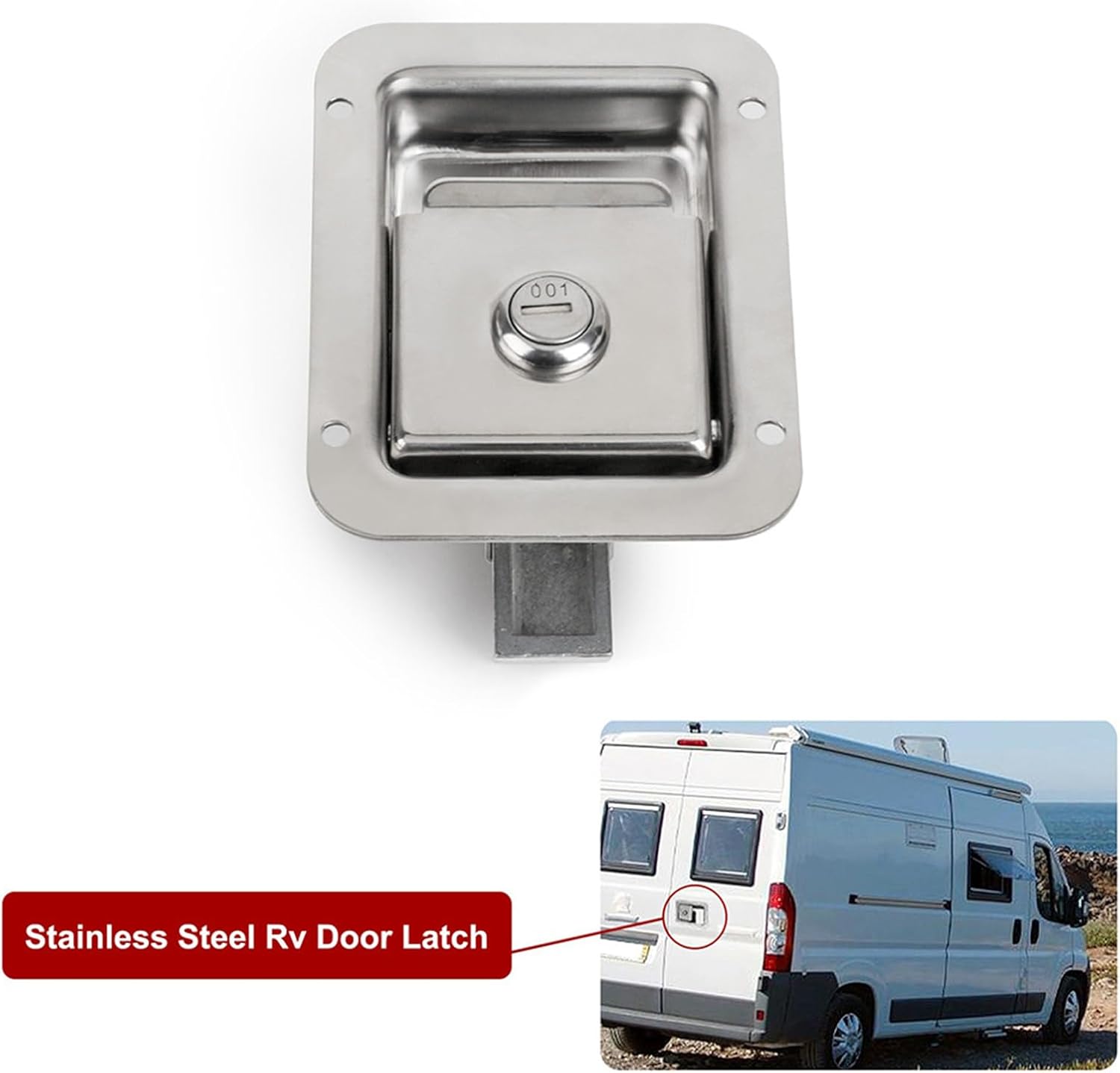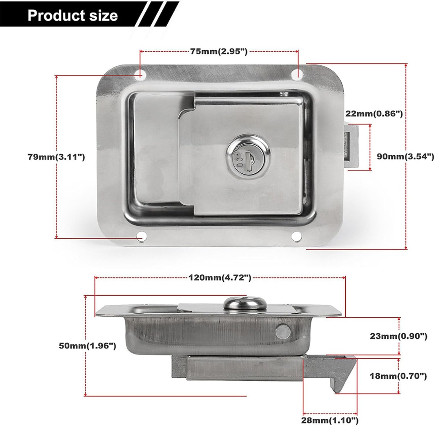 This RV door latch lock is perfect for engineering vehicles and cabinets, and effectively prevents external prying while providing professional security. With its versatile design, it can help maintain cabinet equipment and meet diverse needs. Keep your belongings safe without any hassle.Name: Truck Tool Box LatchMaterial: Stainless steelPackage weight: 440gPackage size: about 12x10x5cm/4.72x3.94x1.97 inchesProduct size: as shownApplicable occasions: trailers, RVs, engineering vehiclesPackage List: Truck Tool Box Latch *1Keys *2