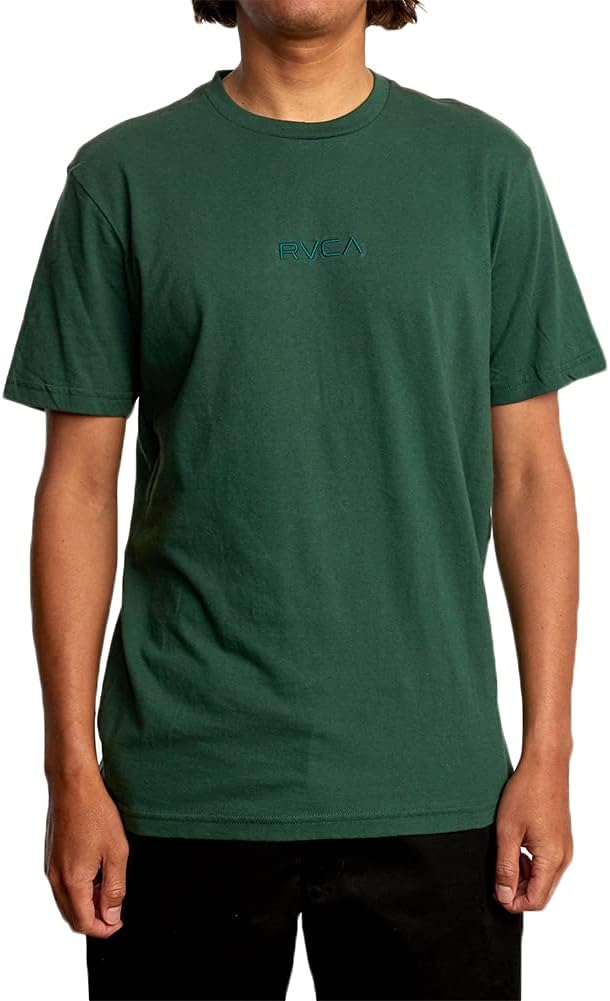 Feel comfortable all day with the softness of the RVCA Small RVCA S/S Tee. Crafted with RVCA red stitching at the shoulders, tonal brand logo at the chest and regular fit silhouette. Pull-over fabrication with a crew neckline. Tagless label design. Short sleeves with a straight hemline. 100% cotton. Machine wash, tumble dry. Imported.