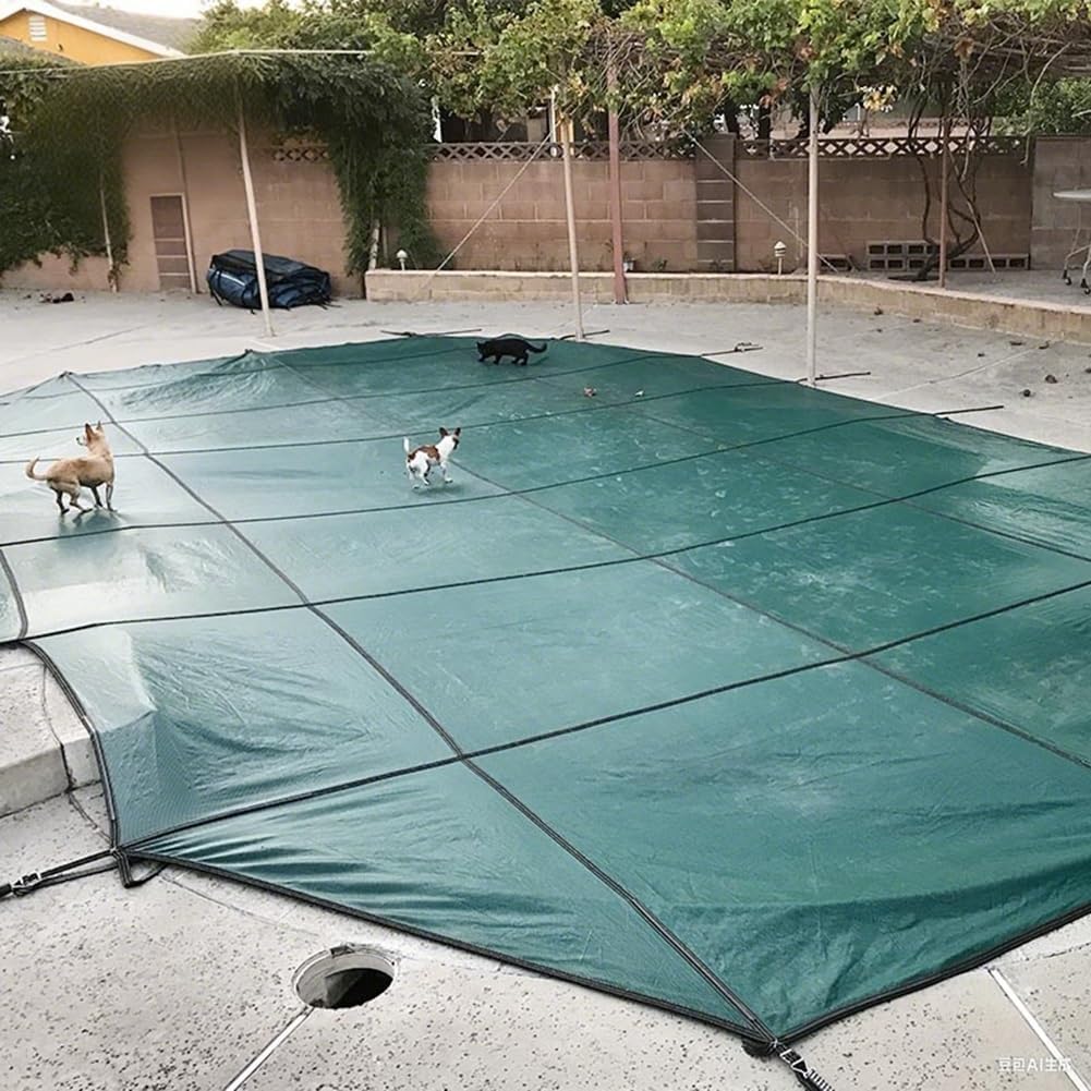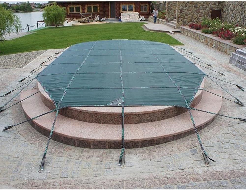 Pool safety coverMaterial: PolypropyleneSurface: Tight MeshShape: RoundSize: Pool cover diameter/pool size(e.g: Diameter 2.2m/1, meaning provide a piece of 2.2m diameter pool cover suitable for a 1m diameter pool)Suitable for the season: All seasonsColor:Green BlueFeature:Good Rainwater Permeability.Protect your children, livestock, small dogs, from falling into the water.Clean up is a snap because no water collects in the cover.Can reduce water evaporation by 95%.Multi-seamed stitching ensures safety and prevents wear and tearChild / Pet Safety Protective: Keeps your family safe during the off-seasonMesh pool safety cover with soft and tough PP material, high temperature resistancePackage:1 x pool safety coverIncludes Installation Hardware