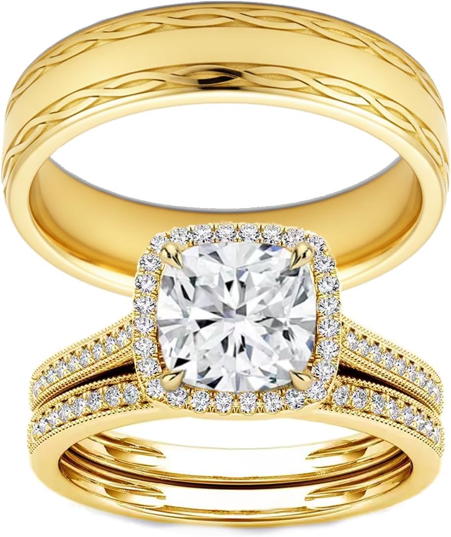 1-3 carat Moissanite couple engagement ring set bridal ring set wedding ring set matching ring set free engraving suitable for men and womenThis moissanite couple wedding ring set is exquisite, fashionable and unique. It is suitable for self-wear or as a precious gift, conveying deep emotions and unique taste, suitable for daily wear or attending formal occasionsMoissanite couple ring details:Material: 925 sterling silver/10k/14k/18k real goldMain stone carat: 1-3 caratsColor: yellow/white/rose goldPacking:1 x Moissanite couple ring1 x Polishing cloth1 x Gift BoxSuitable for many occasions:Wife giftSister giftFriend giftEngagement giftWedding giftMother's Day giftChristmas giftThanksgiving giftBirthday giftAnniversary giftValentine's Day giftFiancee's Day gift