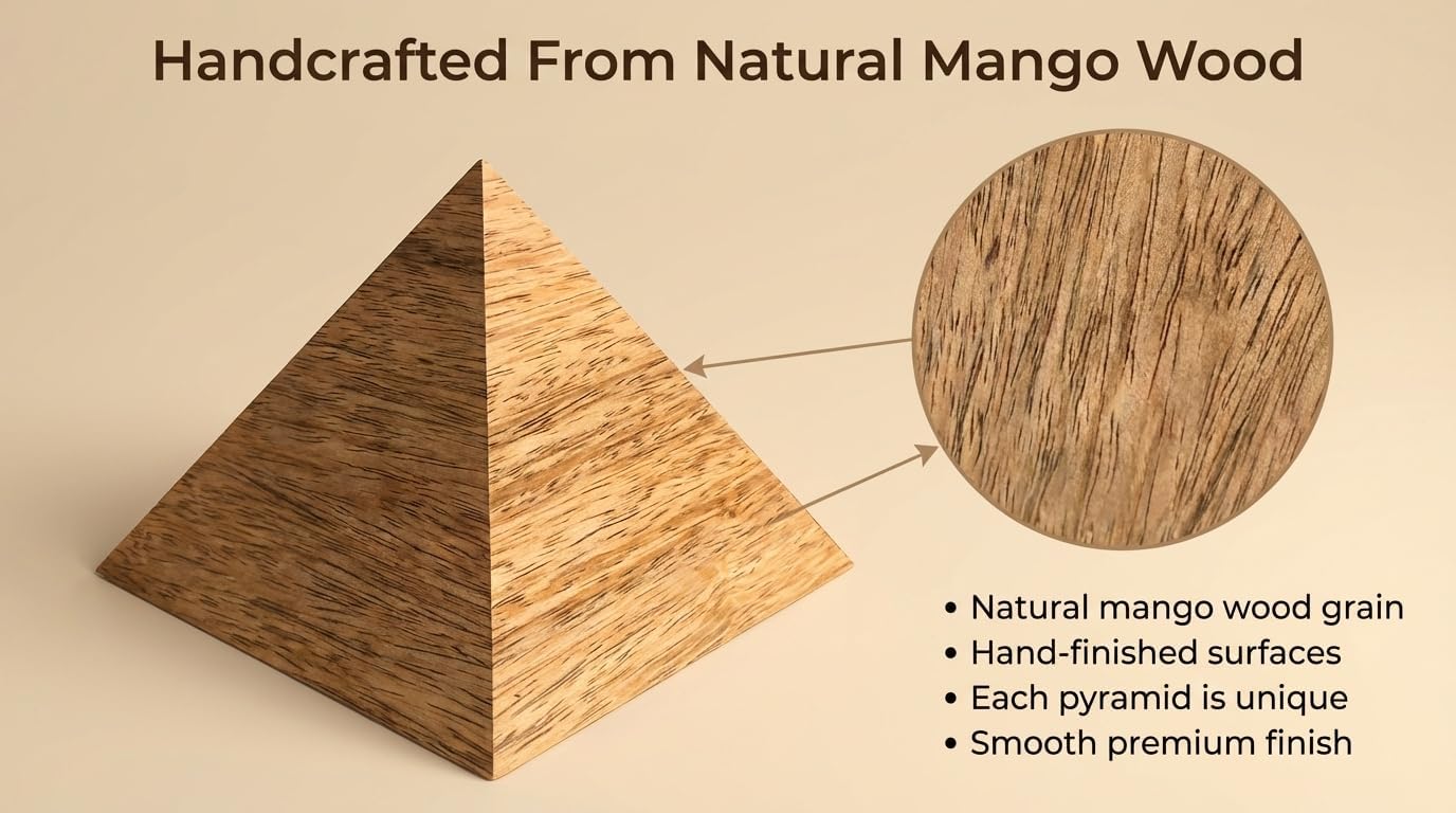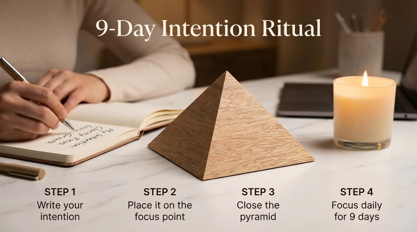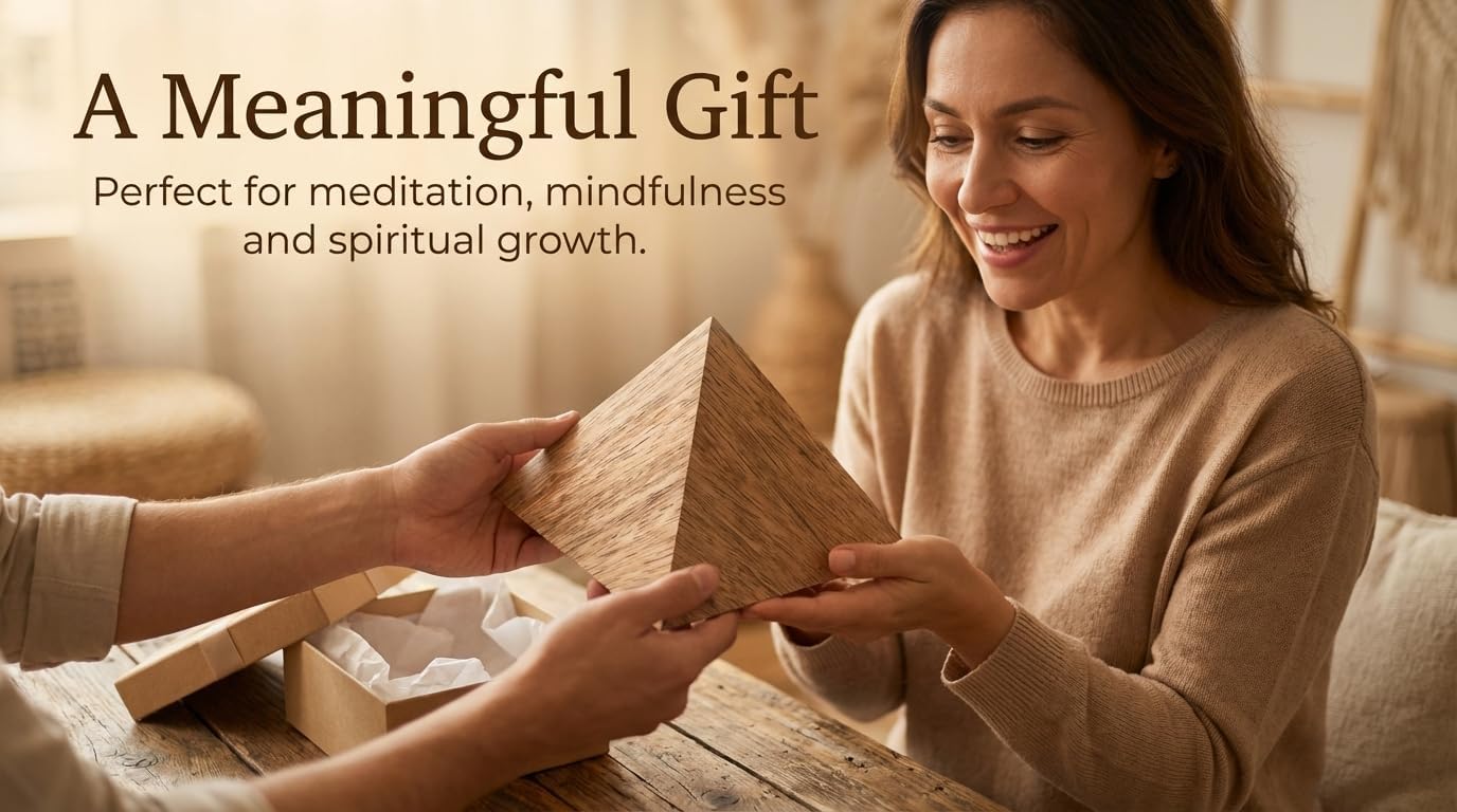 Sacred Geometry Intention Pyramid – Handmade Mango Wood Meditation Pyramid with Hidden Intention Chamber & Full Moon Ritual Guide, Feng Shui Desk Decor for Meditation, Mindfulness & Spiritual Gifts