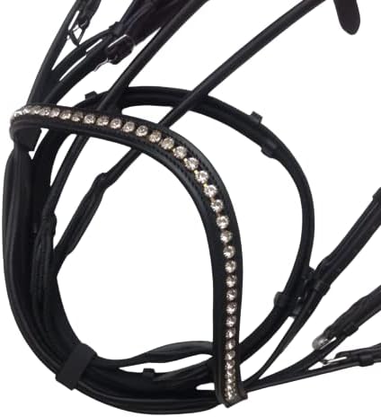 Padded Dressage Brown Bridle blends quality with a great price. Designed with Silver jarkan stone With Brass Fitting traditional crown. Includes web reins with hand stops.