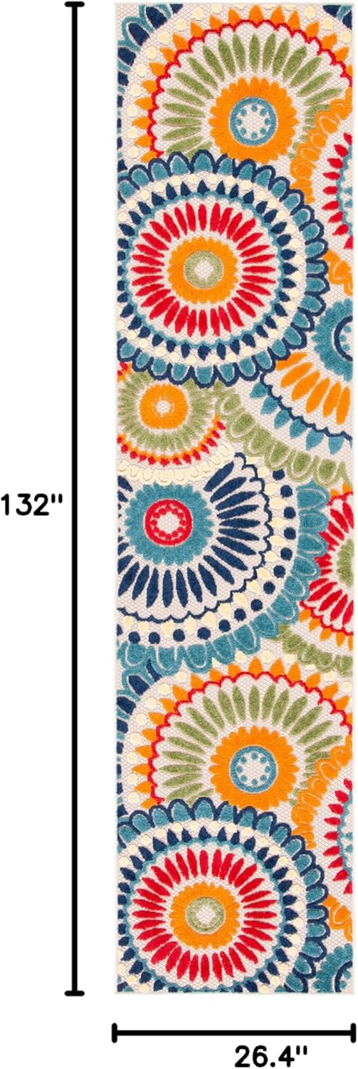 Cabana indoor-outdoor area rugs bring a splash of color and pattern to any living space. Their sturdy polypropylene material makes them ideal for rain or shine. With charming floral patterns, these rugs work beautifully in the kitchen, sunroom, entryway, family room, patio, or mudroom.