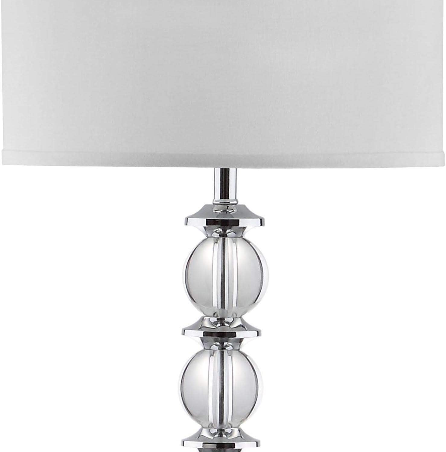 Tiny flourishes make a big impact in the Riga floor lamp. Clear crystal orbs and delicately bowed caps and collars transform Riga into an elegant scene stealer. Shiny chrome base and a white drum shade topper keep the look fresh and contemporary.