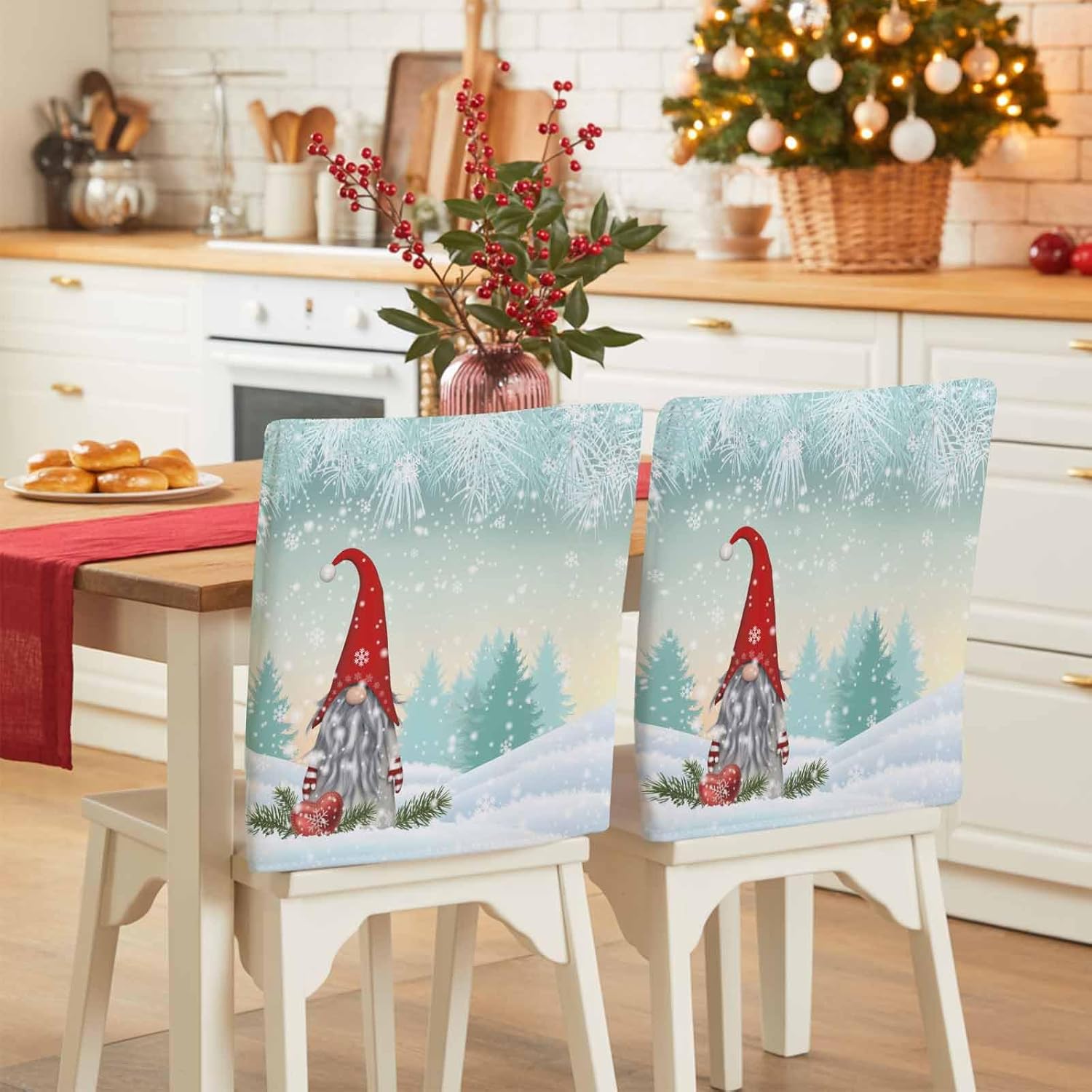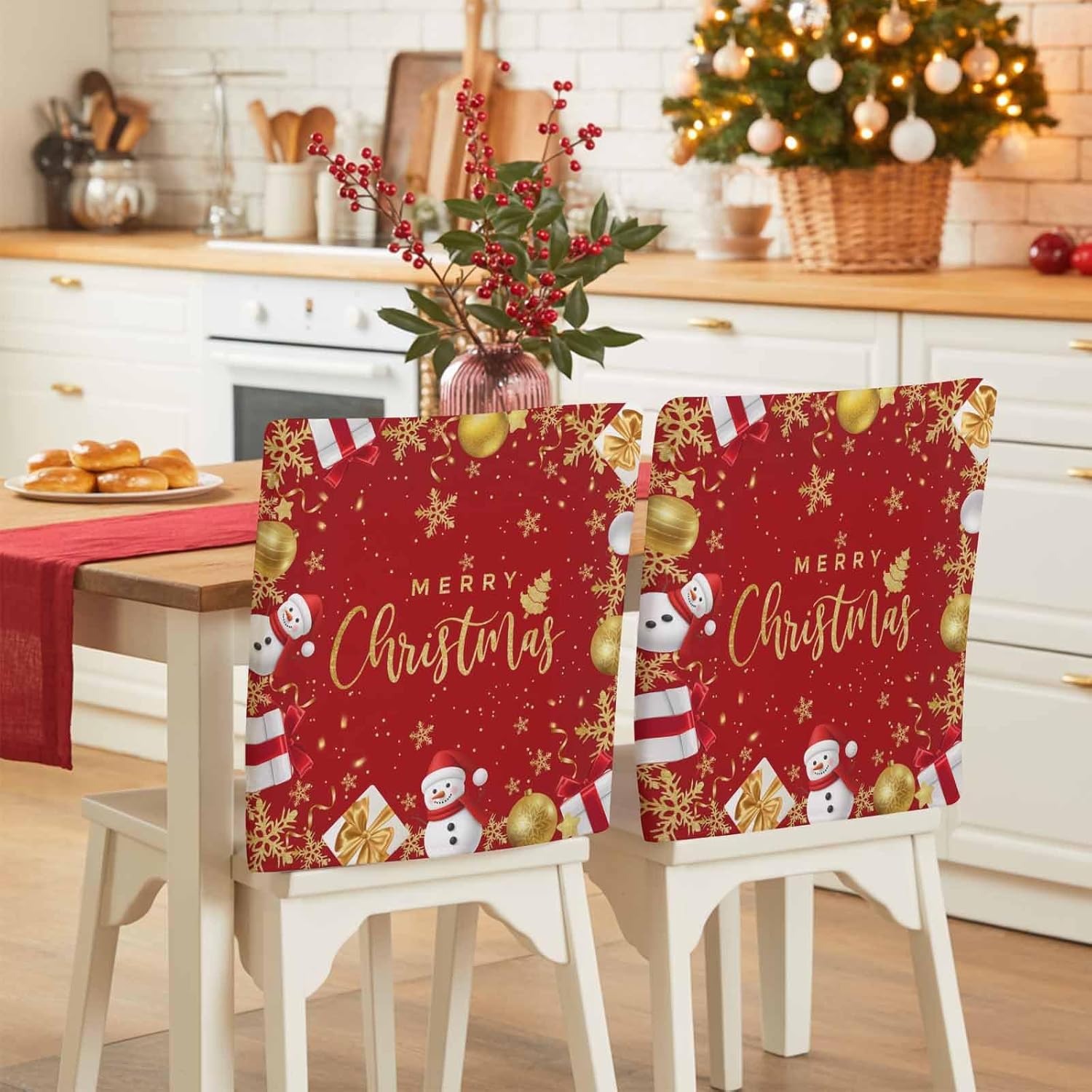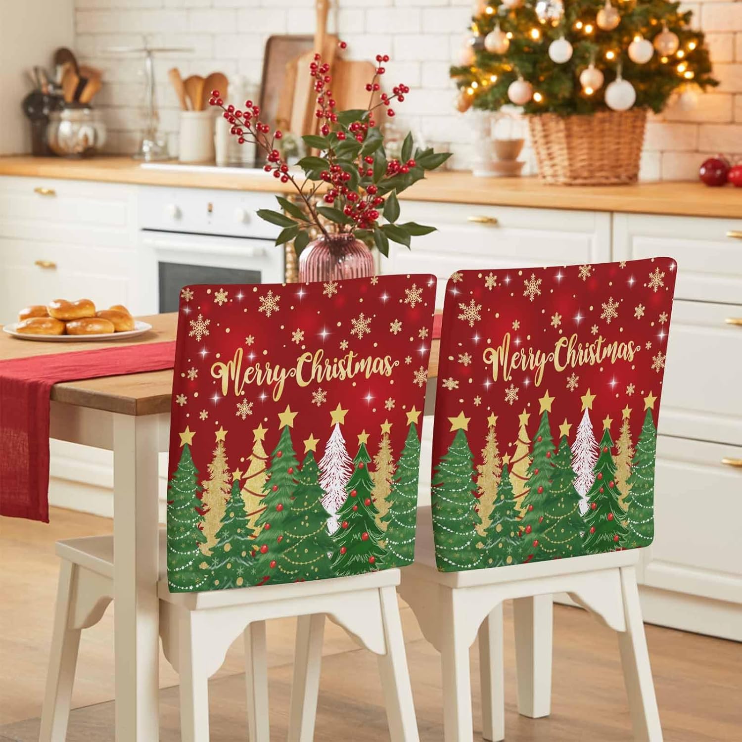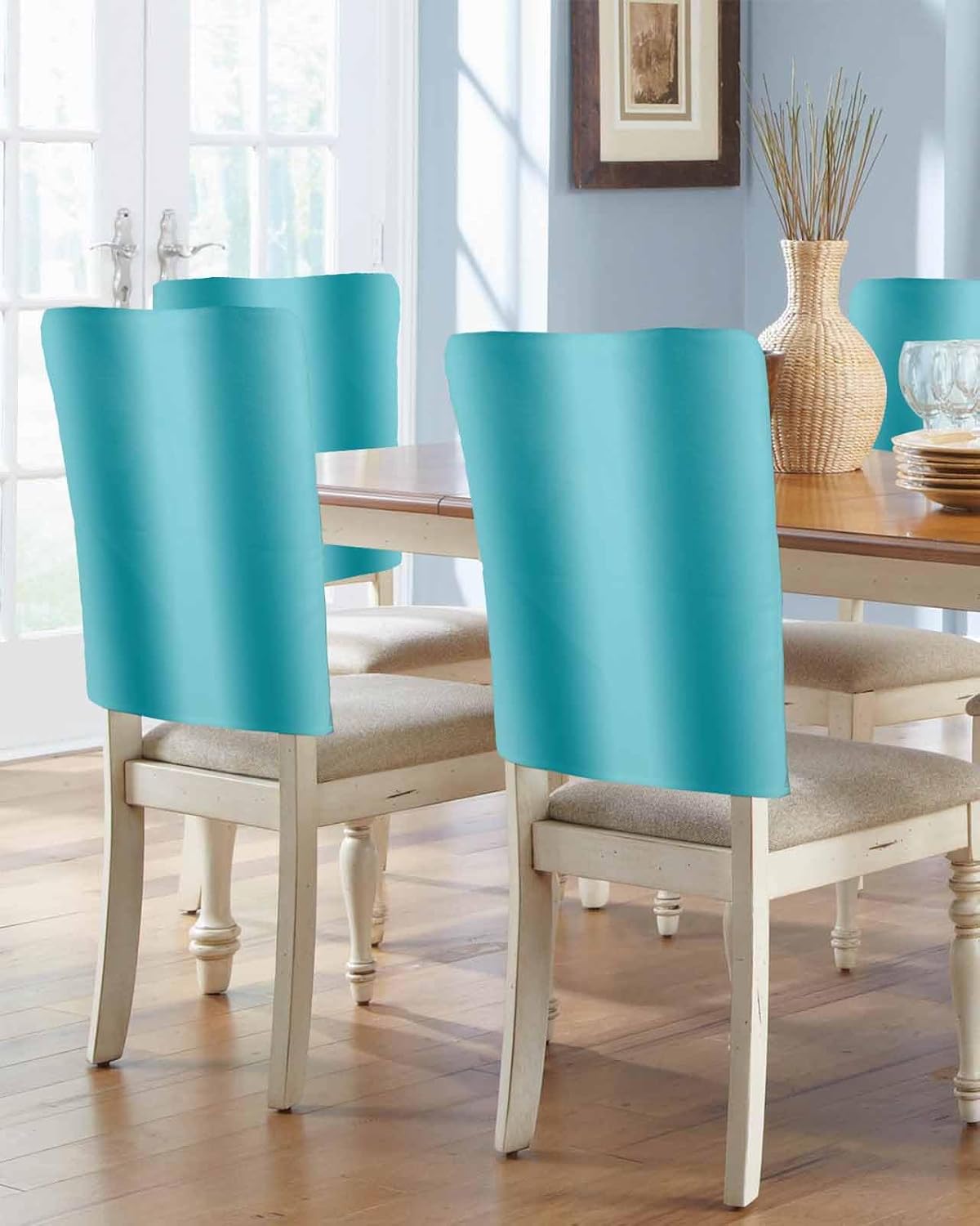 Chair Back Cover - Set of 6 Protect & Decorate Your ChairsElevate your home's décor while protecting your chairs with our Chair Back Covers. This set of 6 covers is designed to fit most standard chairs, providing reliable protection from dust, stains, spills, and pet scratches. Whether you are looking to refresh your dining area or protect your furniture from daily wear, these chair covers are the solution.Details:Package Includes: 6 chair back covers.Size: Each chair cover measures 19" x 20".Note: Please measure the back of chair before order to ensure the fit.Chair Back Protector Features:Durability & Long-Lasting: Our chair covers are woven with high-density fabric, which offers protection against everyday wear and tear, pet scratches, and other potential damage. With high color fastness, the covers will not easily fade, even with prolonged sun exposure, making them perfect for both indoor and outdoor use.PetFriendly: These covers are ideal for households with pets, providing a protective barrier against scratches and bites that can damage your furniture.1. Our chair back covers are available in a variety of stylish designs that complement different décor styles. Perfect for enhancing your dining experience, they pair beautifully with dining tables, placemats, tablecloths, table runners, and cutlery.2. These covers are not only perfect for home use but also ideal for weddings, banquets, parties, conferences, and more. They add a festive touch to any occasion, making them a great choice for celebrations and special events.3. Suitable for various occasions, including dining room, kitchen, bedroom, living room, office, cafes, hotels, and bars.Perfect Holiday Gift: These chair back covers make an good gift for family and friends,especially during the holiday season.Share your best wishes with a thoughtful,practical gift that adds beauty and protection to any home.