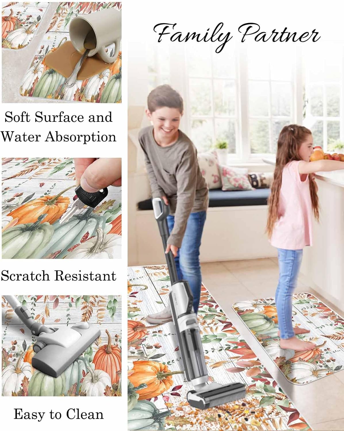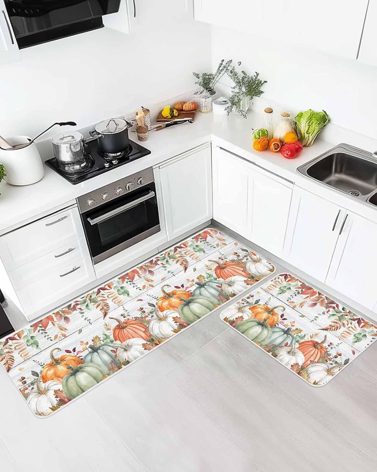 Why Choose Kitchen Mats Runner Rug Set of 2 Non-woven Microfiber Fabric; Non-slip backing; Stain Proof, easy clean; Easy to Storage and Carry; Beautiful design with various patterns; keep you a clean kitchen and protect the floor; Bring more comfort feel to your work time What you get Includes 2 Kitchen Rugs 15.7"" x 23.6"" + 15.7"" x 47.2"" Includes 2 Kitchen Rugs 19.7"" x 31.5"" + 19.7"" x 47.2"" Includes 2 Kitchen Rugs 19.7"" x 31.5"" + 19.7"" x 63"" Includes 2 Kitchen Rugs 23.6"" x 35.4"" + 23.6"" x 70.9"" Versatility This kitchen rugs is exceptional for your kitchen while doing dishes, the laundry room while folding clothes and while working at your workbench and other more place. Note: Please put the kitchen mats on dry flat surfaces, otherwise water or dust under kitchen rugs may cause slippage.