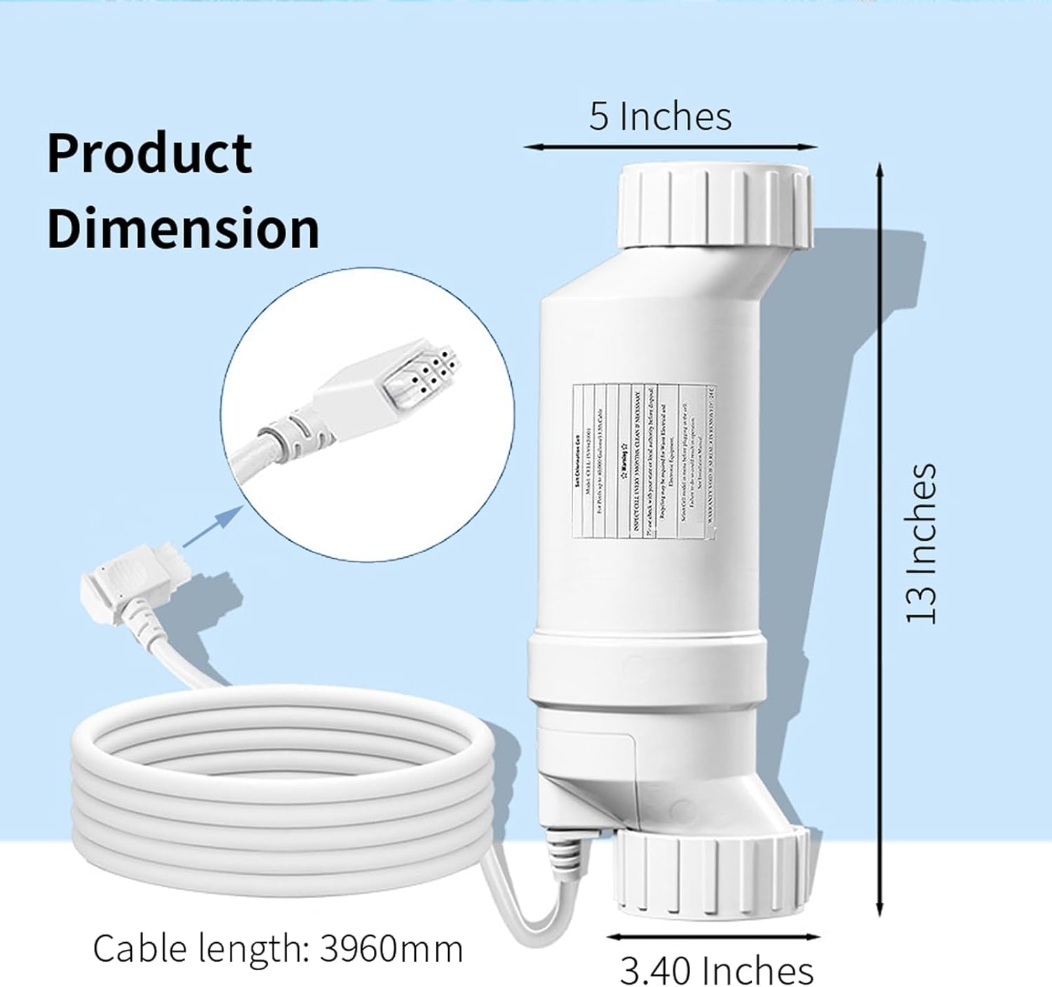 How Does Salt System Work1.Remove the old Cellfrom the plumbing by loosening the threaded collars on both ends of the cell.Disconnect the Cell Cord from the control panel.2.Inspect the O-rings onthe plumbing unions. If damaged or worn, replace before installing the newCell.3.Position the new replacement Cell between the plumbing unions.Tighten the two threaded collars by hand for a water-tight seal, do notover-tighten. Plug the Cell Cord into the control panel๐Product OverviewThisfactory-direct salt chlorine generator cell delivers unmatched longevity forHayward T-Cell-15 systems. Engineered with aerospace-grade electrode coatingsand rigorous QC standards, it outperforms generic replacements in corrosionresistance and chlorine yield. Backed by a 24-month warranty, itโs the reliablechoice for crystal-clear pool water.โ๏ธKey Technologies & AdvantagesSuperiorElectrode Material: Multi-alloy coating (Ru-Ir) ensures 99% electrolysisefficiency; Withstands high-salinity environments; Acid-wash interval extendedto 500+ hours.Energy-SavingDesign: Consumes only 5W per gram of chlorine; Reduces salt consumption by 15%vs. standard cells.SmartIntegration: Compatible with Hayward automation panels (2009+ models);Real-time salinity reading via AquaRite display.๐ Technical Specifications Parameter Specification Pool Capacity 40,000 gallons (151,400 L) Chlorine Output 1.45 lbs/day Operating Voltage 110-240V AC Salt Tolerance 2,500โ6,000 ppm Dimensions 13" x 3.5" (330 x 89 mm) Weight 7.lbs (3.2 kg)