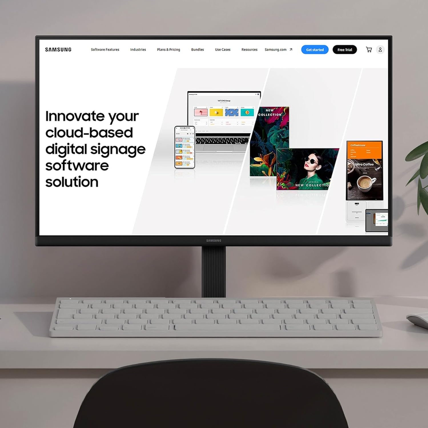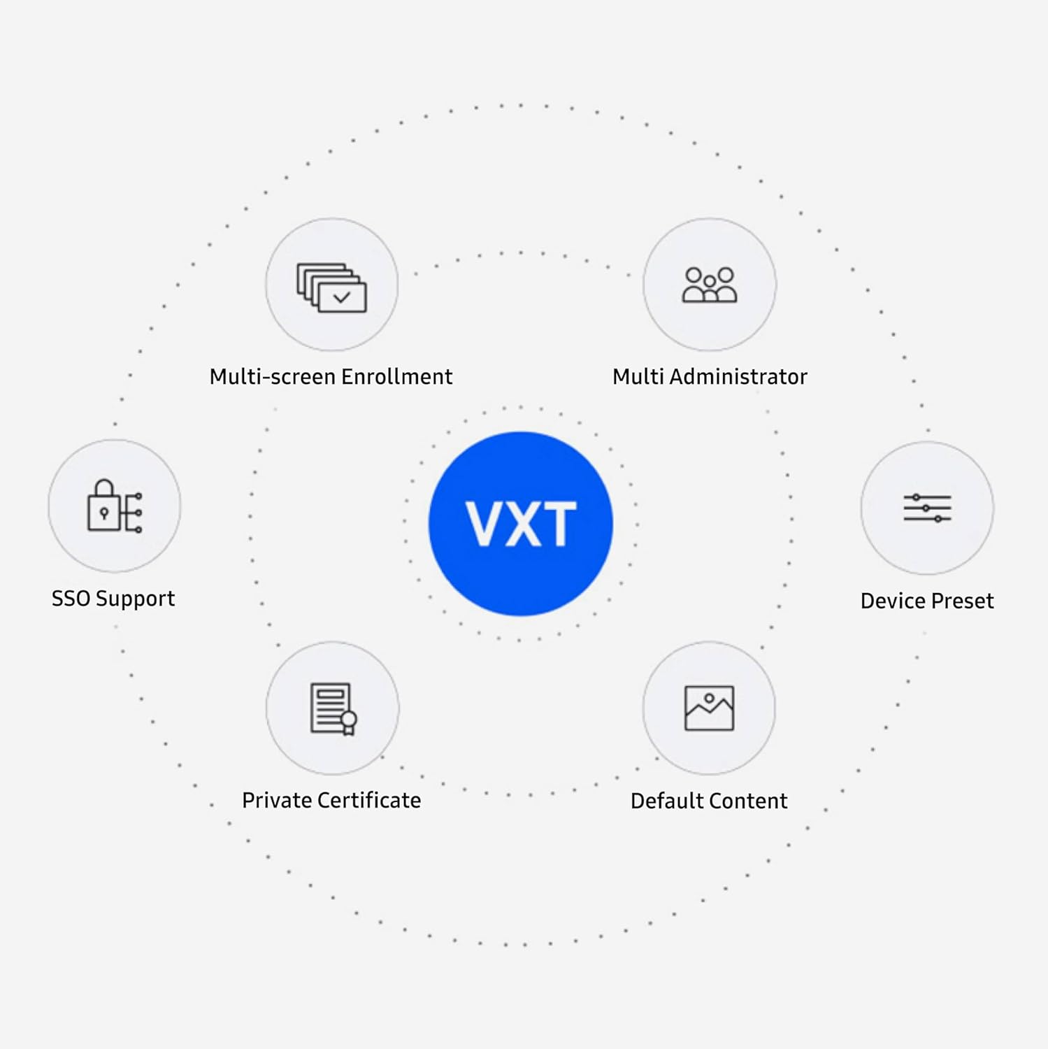 Easily create, edit, and schedule content for your digital displays with over 250 professionally designed templates and free stock images. Design content for your digital display from any device with a Chrome browser using Samsung VXT's P Series Plan. Bring together flexible and efficient operation, faster setup, and system recovery optimized for any business.Get your content up and running quickly with a flexible cloud-based solution that’s simple to setup, operate, and scale. Configure a screen wall that allows multiple screens to function as a single, unified display. Easily create and deploy a synced Playlist, allowing you to either expand the content across all screens or duplicate it on each screen, based on your preference. Set up different scenarios for each channel so that when a specific scenario occurs, only that channel needs to be updated without redistributing the content. Additionally, content can be automatically assigned to screens based on tags. Set up a trigger event for content switching. Touch and UDP events can be set up as triggers, enabling more dynamic content utilization. Samsung VXT is the first digital signage solution in the world to obtain ISO 27701 certification, ensuring the safe handling and storage of personally identifiable information.