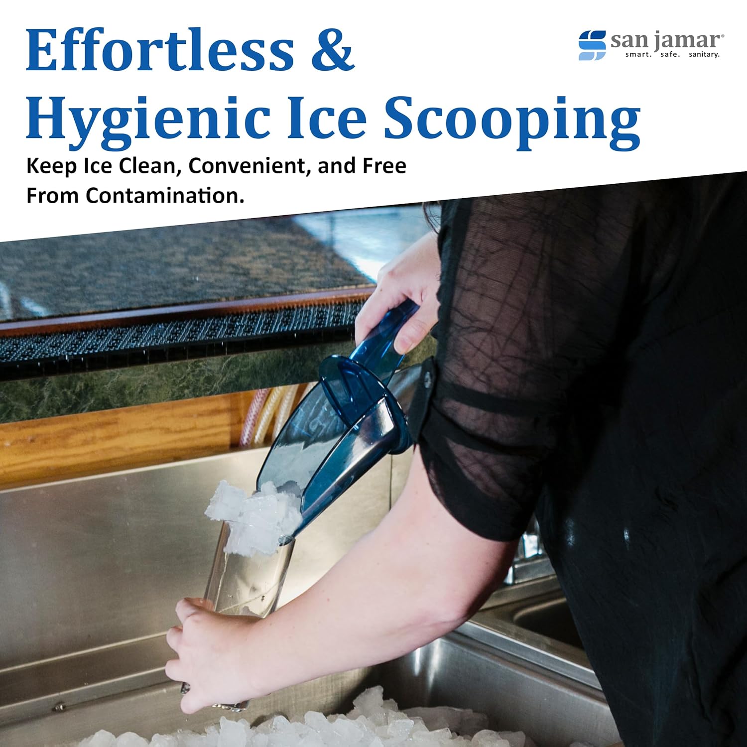 Ice Scoop, Capacity 64 to 86 oz, Overall Length 14 7/8 in, Overall Width 6 3/4 in, Material Polycarbonate, Dishwasher Safe Yes, Color Blue, Standards NSF