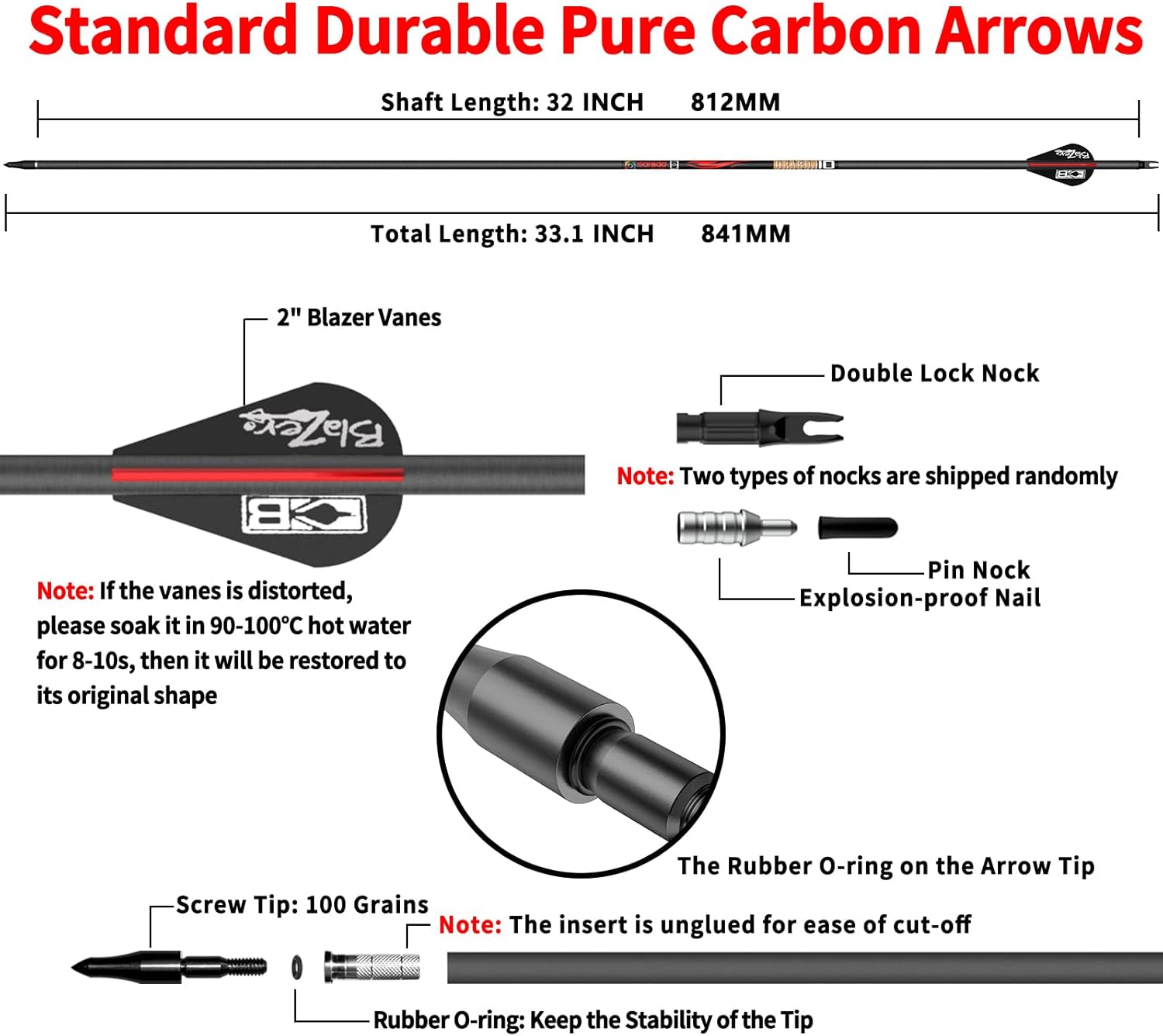 Package 1: 24pcs Dragon 10 Pure Carbon Arrows Straightness: +/-.001" 470 SpinePackage 2: 24pcs Dragon 9 Pure Carbon Arrows Straightness: +/-.003" 470 Spine