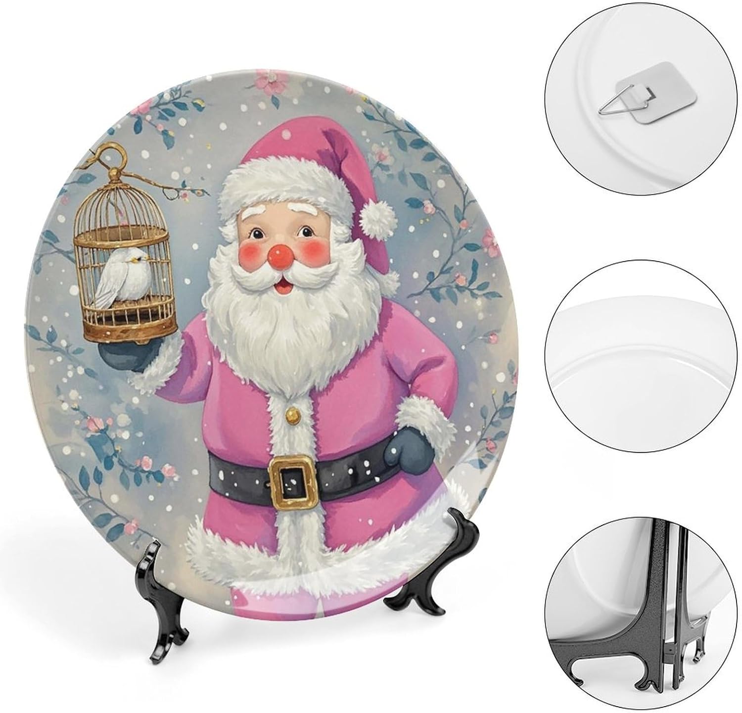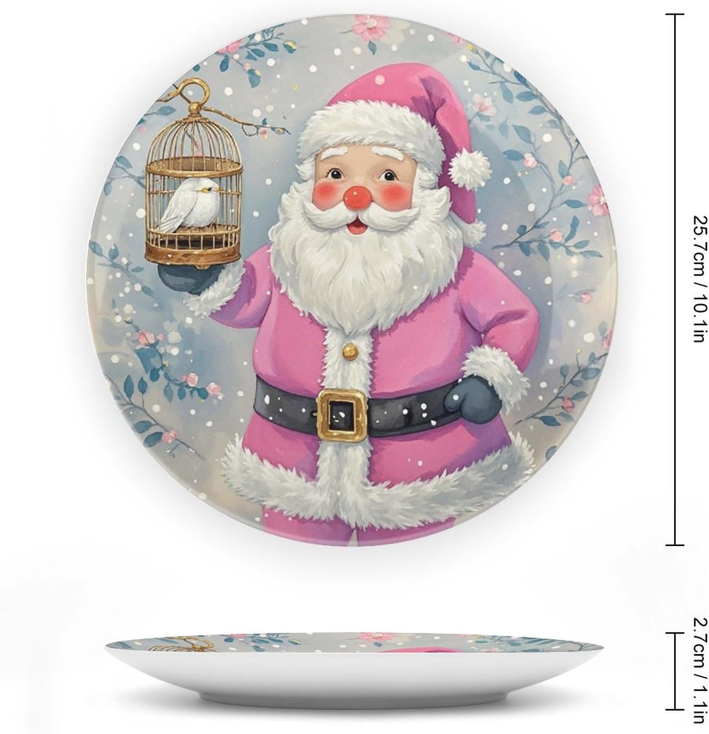 Are you looking for a good gift? Are you looking for a good furniture decoration? Then choose us! Why choose our bone china decorative plates? Our Santa Claus printed bone china plate set includes a decorative plate + bottom frame + hook + adhesive sticker. It can be placed anywhere you want to decorate, elegant and beautiful. This bone china decorative plate is available in 6.1 Inch, 7.7 Inch, 8.7 Inch, 10.1 Inch four sizes for your choice. 6 inch - Diameter 15.4 cm /6.1 in, Thickness 1.7 cm/0.7 in. 7 inch - Diameter 18 cm/7.7 in, Thickness 2 cm/0.8 in. 8 inch - Diameter 20.7 cm/8.7 in, Thickness 2 cm/0.8 in. 10 inch - Diameter 25.7 cm/10.1 in, Thickness 2.7 cm/1.1 in. This bone china decorative panel with a display stand can be placed in a three-dimensional manner, can be placed in a porcelain cabinet, on a shelf or side table,or hung on a wall, giving it a very elegant and artistic appearance. Its sophisticated design will complement any interior decorating style, becoming a focal point wherever it is placed. This decorative plate adopts a adhesive stickers design, which is very convenient even if you want to disassemble it in the future. It's easy to clean and just wipe with a dry cloth when needed. Every plate will be carefully packed, so it will arrive very safely. If there is damage, you can contact our to help you.