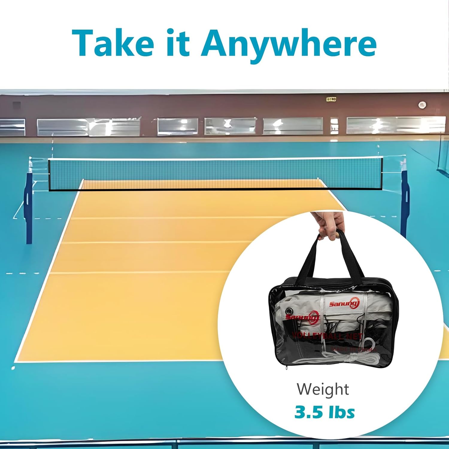 Sanung Volleyball Net for Backyard For those who love volleyball game, choosing the right volleyball net is very important for a pleasant gaming experience. When choosing a volleyball net, many factors need to be considered, such as service life, installation difficulty, portability, and safety features. By comparing and emphasizing these features when purchasing, you will be able to choose a volleyball net that can enhance the gaming experience and prolong service life. Choosing the right volleyball net can sometimes change the game. Our volleyball net combines long life, easy installation and stability, allowing players to focus more during the game. Strong Stability Our volleyball net is equipped with two metal buckles to ensure that the net remains stable throughout the game and can withstand greater impact. Wide Application Our net can be used in a variety of scenarios, such as indoor and outdoor courts, swimming pools, beaches, etc., so that you can enjoy sports fun anytime, anywhere. Specifications: Brand: Sanung Size: 32 FT x 3 FT Mesh size: 3.93 inches x 3.93 inches Net diameter: 0.09 inches Material: The material of the net is PE (polyethylene), and the edging is canvas. Applications: both indoor and outdoor, swimming pool, beach, etc. Packing List: 1 x Volleyball Net 6 x Polyester Drawstrings 1 x PVC Carrying Bag 2 x Buckles Weight: 3.5 lbs