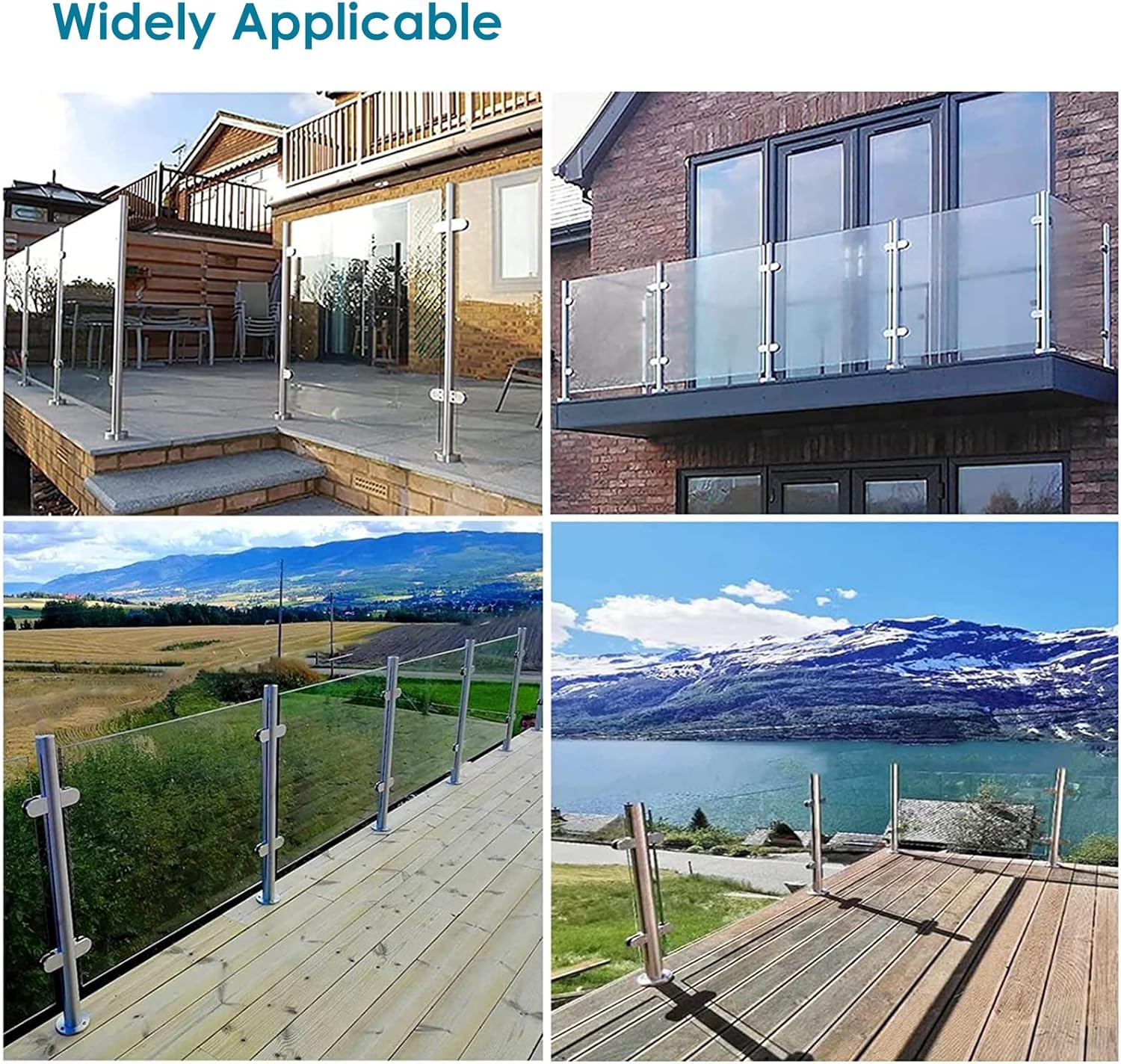 Stair Railing Handrail:Enhance your outdoor and indoor spaces with our premium Glass Railing Post, perfect for balconies, decks, patios, and swimming pool guardrails. Designed to meet diverse needs, this versatile post includes end, corner, and middle options to accommodate various angles and layouts, ensuring a seamless integration into your home or outdoor area. Specifications:- Material: Durable 304 Stainless Steel- Adjustable Height: 50-150cm (19.7-59.1 inches)- Card Slot Dimensions: 6.5x4cm (2.6x1.6 inches)- Square Tube Size: 5.1x5.1cm (2x2 inches)- Compatible with Glass Thickness: 10mm-12mm, 5+5mm, or 6+6mm Key Features:- Constructed from high-quality stainless steel for long-lasting performance.- Engineered to withstand harsh weather conditions, ensuring durability and reliability.- Designed to securely clamp glass, wood, plastic, or metal panels, providing flexibility in design.- Easy installation with included screws, rubber gaskets, and plate covers, eliminating the need for drilling on glass. Package Includes:- 1 × Glass Railing Post Customer Support:- We are here to assist you with any questions or concerns regarding your order. - Please note that manual measurements may result in slight variations in dimensions. - Product images may differ slightly from the actual item due to display and lighting conditions. - If any screws become loose during use, simply re-tighten the nuts to maintain stability.