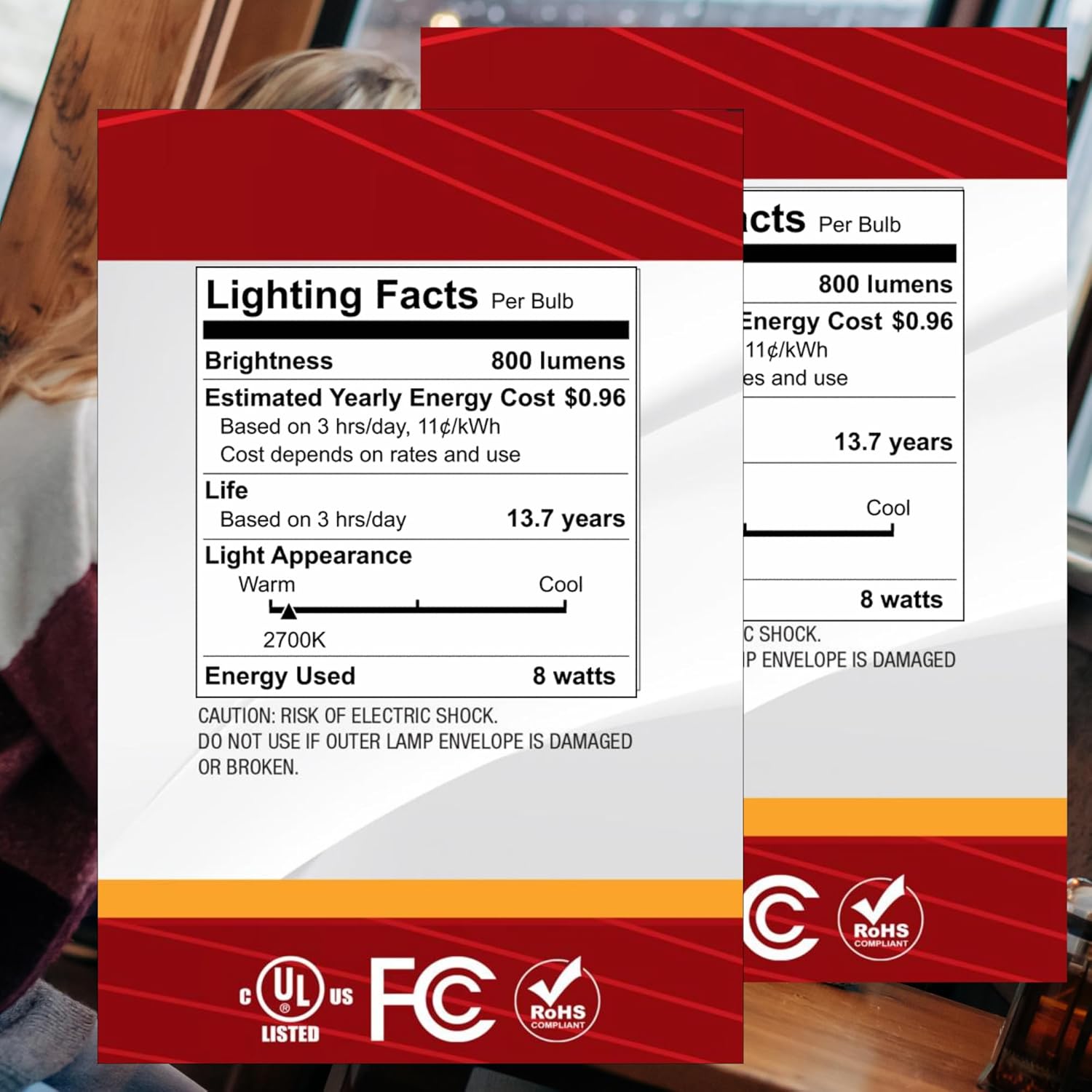 | Additional Features | 15,000-Hour Rated Life: Provides years of dependable lighting, reducing relamping needs in high-use areas., 180° Wide Beam Angle: Illuminates large spaces evenly, ideal for high ceilings, mirrors, or statement lighting., Certified Performance with Warranty: Meets cULus, RoHS, and FCC standards; protected by a 2-year manufacturer warranty., Smooth Dimming on 120V Circuits: Works with standard dimmers to adjust brightness for any environment or task., Wet Location & Enclosed Fixture Rated: Approved for damp indoor areas and compatible with sealed light housings. |
