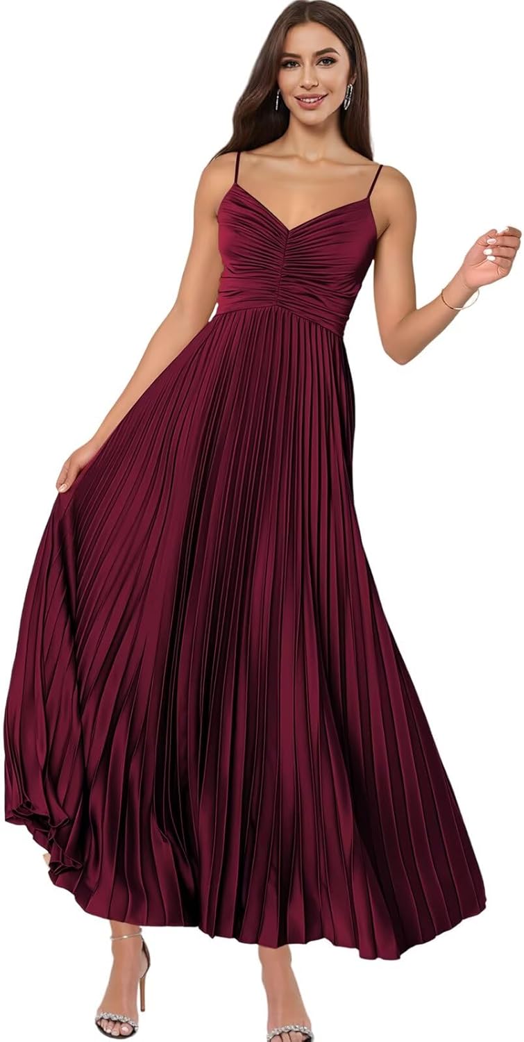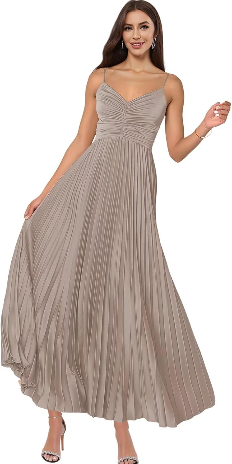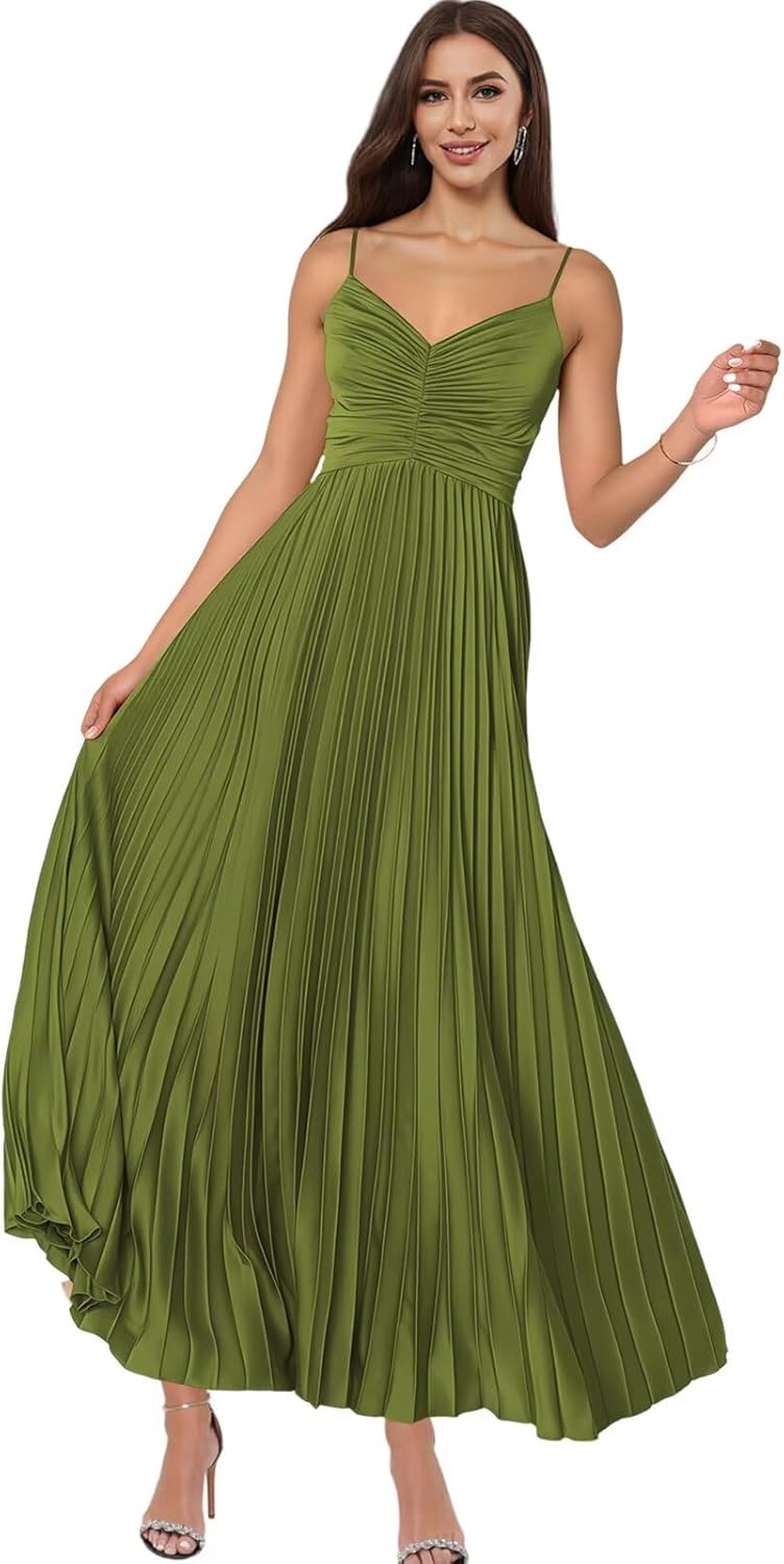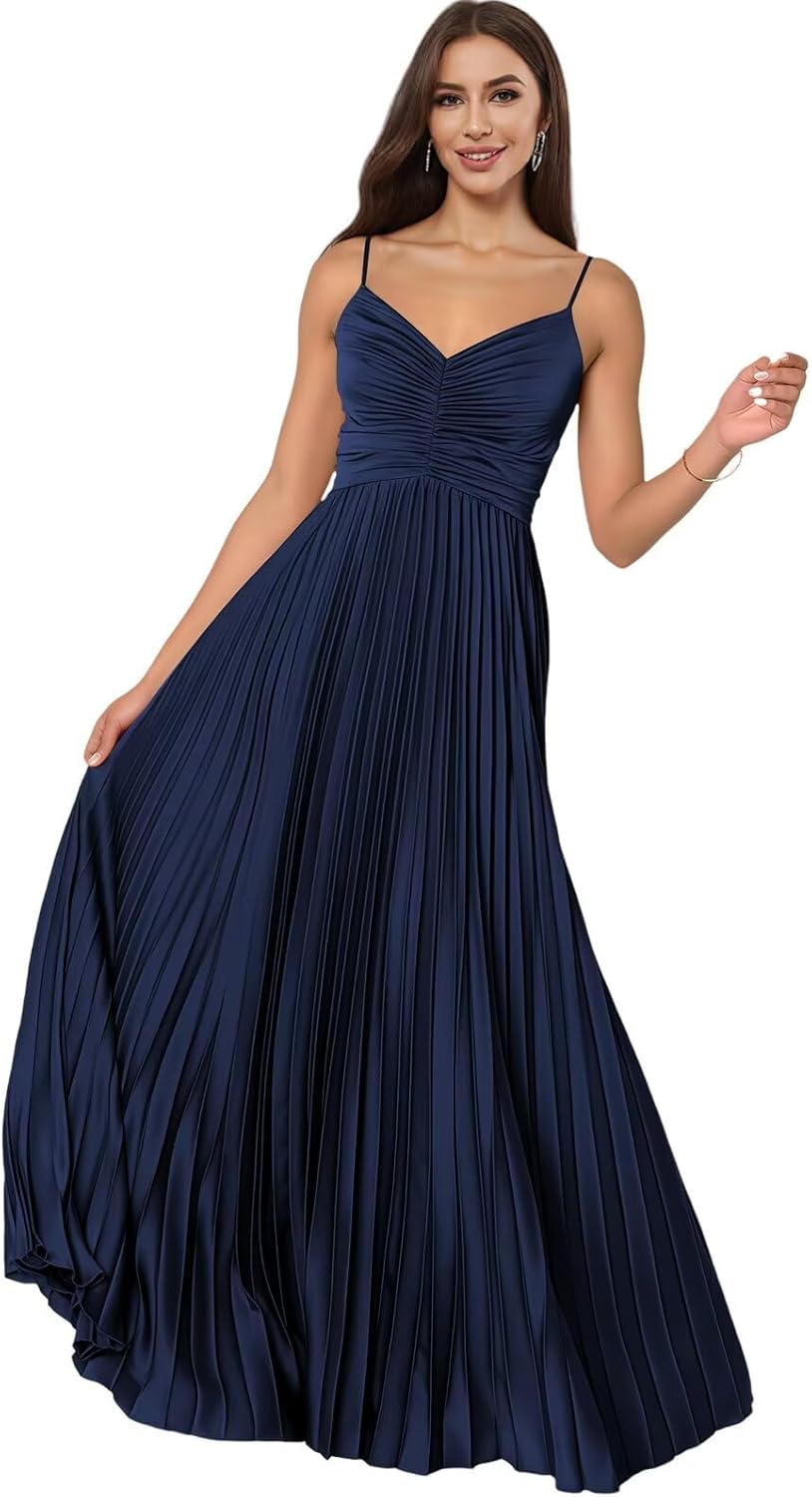 Features: Quorivae Pleated Satin Bridesmaid Dresses V Neck Spaghetti Straps long Formal Dress . Fabric:Satin Silhouette:A Line Back:Lace up Back Size Selection: Please follow the measure chart, provide your measurements as follows: 1. Bust___inches 2.Waist___inches 3.Hips___inches 4.Hollow to floor ___inches 5.Natural Height(without shoes)___inches 6.Heels Height___ inches 7.The date you need the dress:____