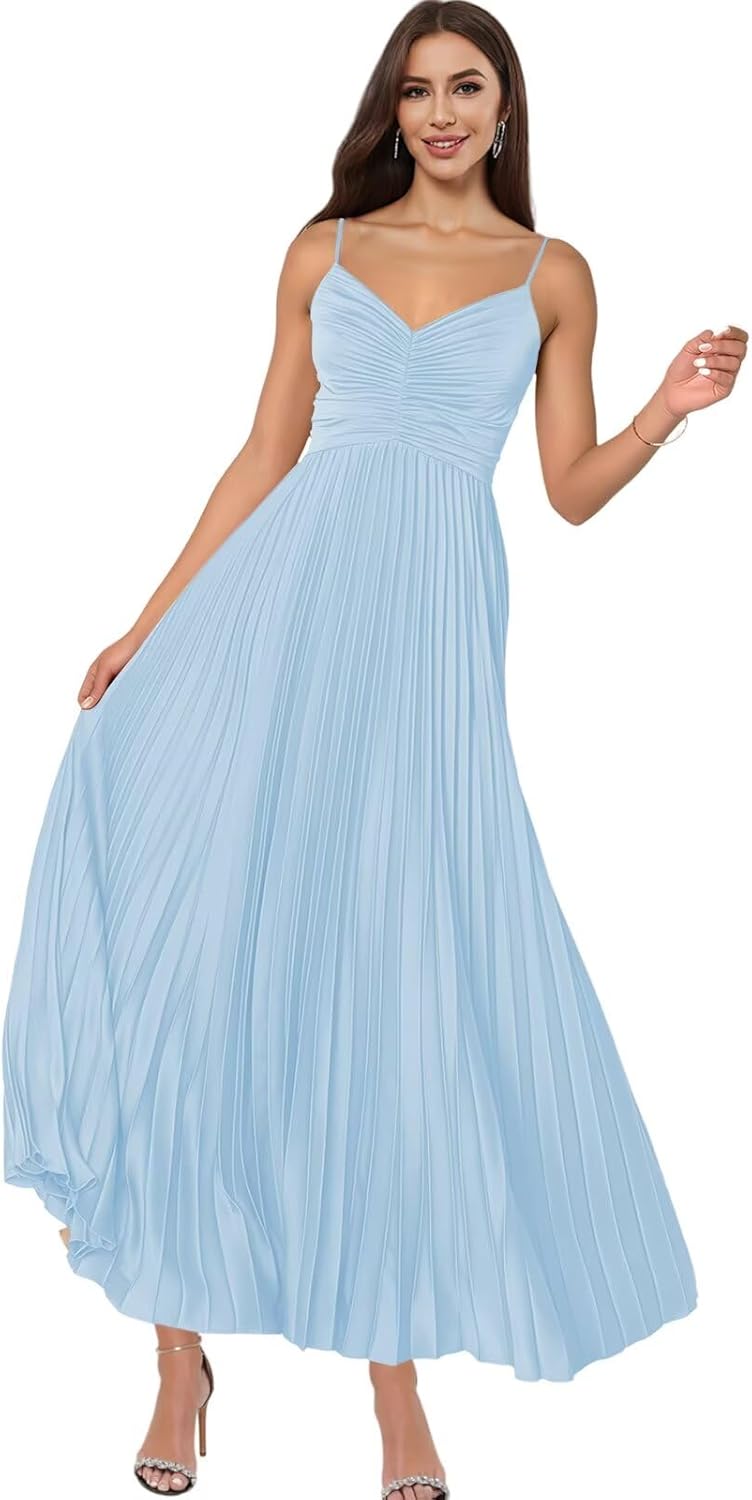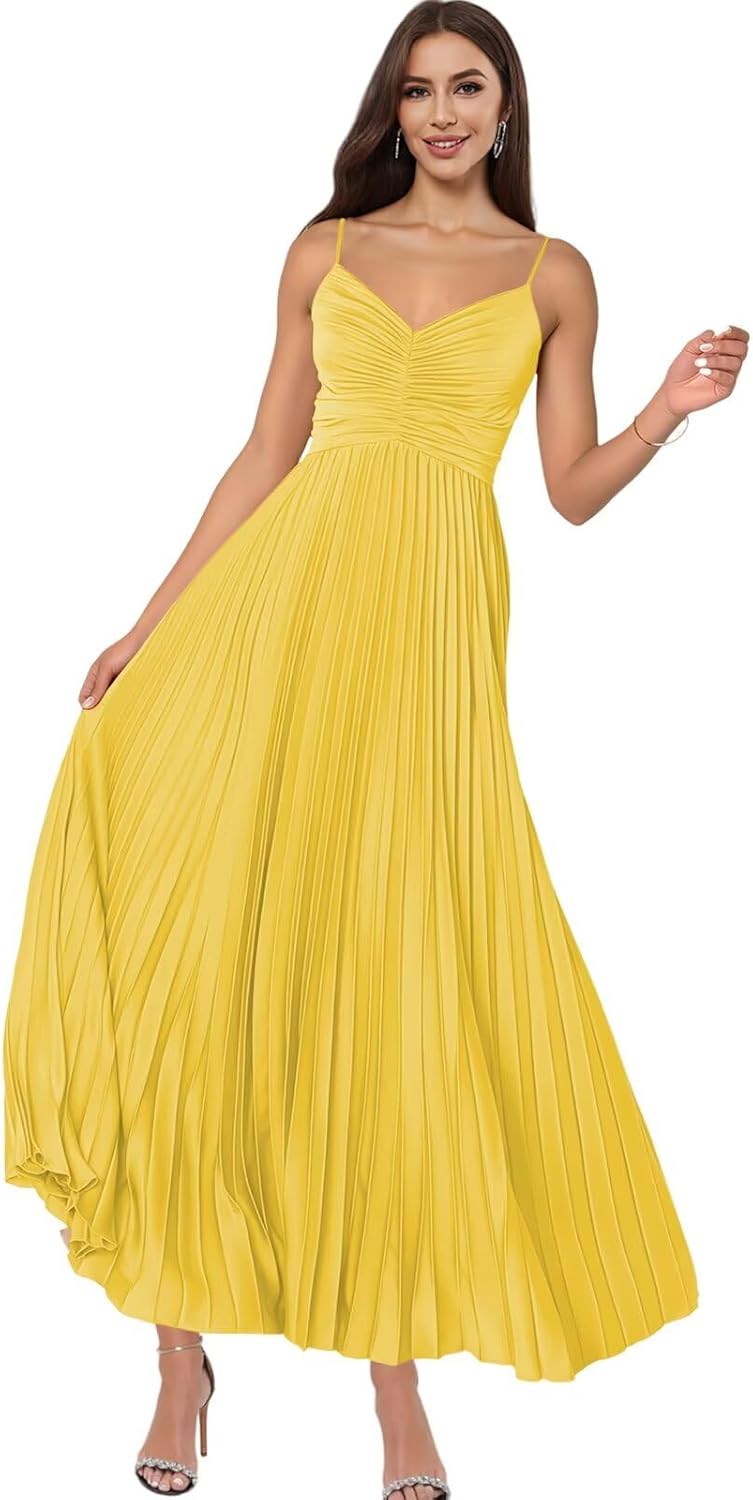 | Embellishment Feature | Pleates, Spaghetti Straps, V Neck |