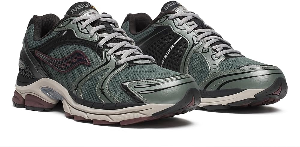 The Saucony Progrid Triumph 4 is a light green and brown automotive helmet, weighing 145.00 pounds. It features a glossy finish and 25 vents for optimal comfort and breathability. The helmet is equipped with laces closure type and Progrid technology for added support and cushioning. The Saucony Progrid Triumph 4 is manufactured by SAUCONY and has a model name of Progrid Triumph 4.