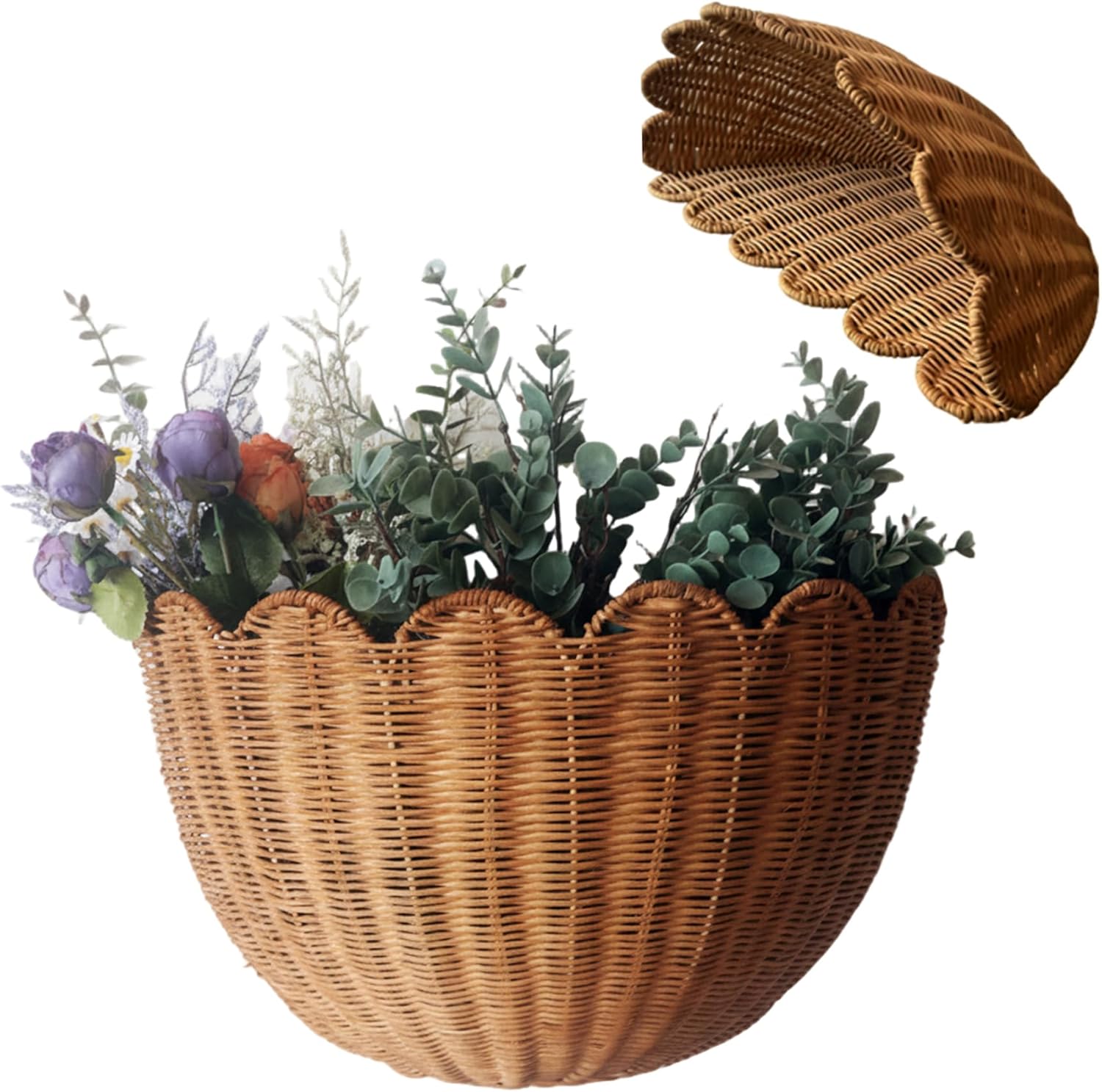 Description: This scalloped wall basket masterfully blends rustic charm with practical storage to elevate your living space while maintaining order. Crafted by expert artisans using natural, wicker, its delicate scalloped contours and intricate woven patterns bring a warm, eco-friendly elegance to . Designed for versatility, it functions as a hanging basket to store fruits, vegetables, toiletries, or display plants, making it perfect for kitchens, bathrooms, living rooms, or even commercial spaces like hotels and guesthouses. The lightweight, wicker construction ensures easy mounting without sacrificing strength or style. Its simple yet sophisticated design harmonizes seamlessly with modern, Scandinavian, and country decor styles, turning your wall into a tasteful focal point that adds both beauty and utility. This basket is an ideal for those seeking sustainable home decor solutions that combine artistry, function, and environmental consciousness in one unique piece. Features:. -Color: Brown. -Material: Rattan. -Size: 40.5x28 cm/15.94x11.02 inch. Note:Manual measurement, please allow slight errors on size.The colors may exist slight difference due to different screens. Package Including 1 * Scalloped Wall Basket
