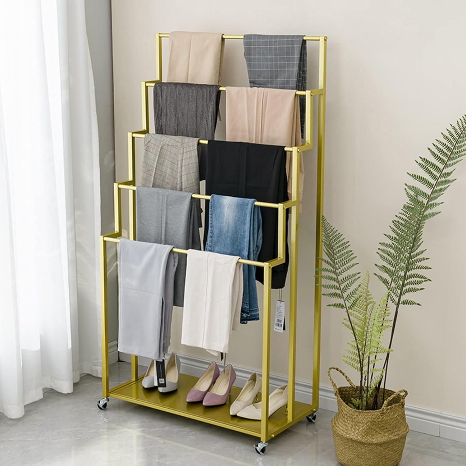This beautiful floor standing organizer can be placed anywhere to hold and display all your scarves, purses, jewelry and other accessories.●SpecificationsMaterial: IronHeight: 150cm/59 inchWidth: 40cm/16 inchStorage: Shawls, Hijab, Pant, Jeans, Blanket, Scarf, Ties and Towel etc.●FeaturesHeavy weighted base for stabilityAll tools included. Follow the step by step instruction to assemble effortlessly.universal standing rack fits along a wall, in a corner, or anywhere you need smart organization●Package Content: 1×Storage Rack●Our ServicesAll enquiries will be valued and replied within 24 hours.Our Inspection Department will test each batch of product to ensure the quality, including material test and performance test.Your any feedback will be highly appreciate to make sure we can do better and better.●Note:Manual measurement,there will be 1-3cm error,please understand.If a slight odor is normal,it will disappear within two to three days.Due to light and personal differences in color understanding,there will be small color difference,in kind prevail.