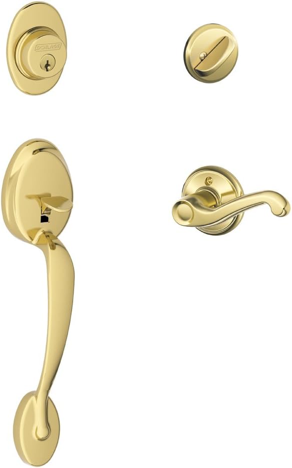 Product Description The Plymouth Single Cylinder Handleset and Right Hand Accent Lever in Bright Brass is perfect for use on exterior front doors. The Accent Lever is widely popular for its elegant wave-like design that effortlessly matches a room’s style without overshadowing it, while Plymouth trim’s oval shape and straightforward design looks especially classic. When finished in Bright Brass, the handleset takes on a warm golden sheen that adds a vintage appeal. Plus, it’s been designed and tested with strength and durability in mind. From the Manufacturer For more than 90 years, Schlage has built a legacy of providing security, quality and innovation to homes and businesses. With products that meet the highest industry standards, Schlage hardware is made to protect your home and give you peace of mind that only comes with products that stand the test of time. Security, quality and convenience - it is easy to see why Schlage is the most preferred residential door lock brand by consumers and brand most used by builders. (Nooro Research , independent research funded by Ingersoll Rand Co., 2011 Builder Magazine, 1998 - 2011)