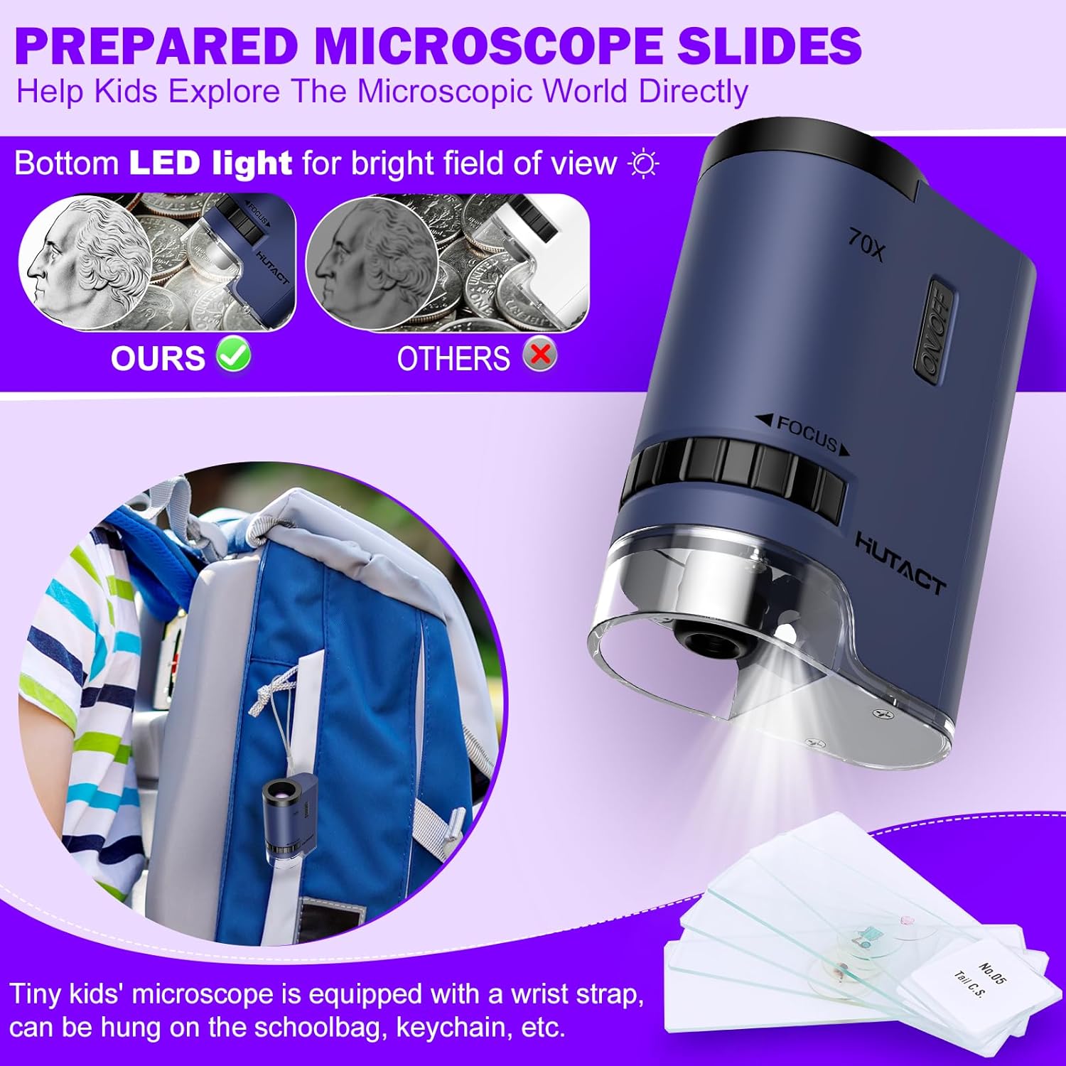 | BuiltIn Media | microscope;5 pcs prepared slides;wrist strap;colorful box;cleaning cloth;manual |