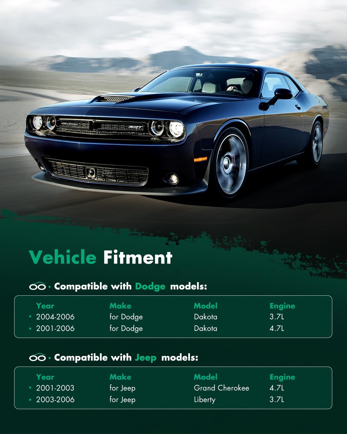 | Special Features | for Dodge for Dakota 3.7L 2004-2006,for Dodge for Dakota 4.7L 2001-2006,for Jeep for Grand Cherokee 4.7L 2001-2003,for Jeep for Liberty 3.7L 2003-2006,for Mitsubishi for Raider 3.7L 2006 |