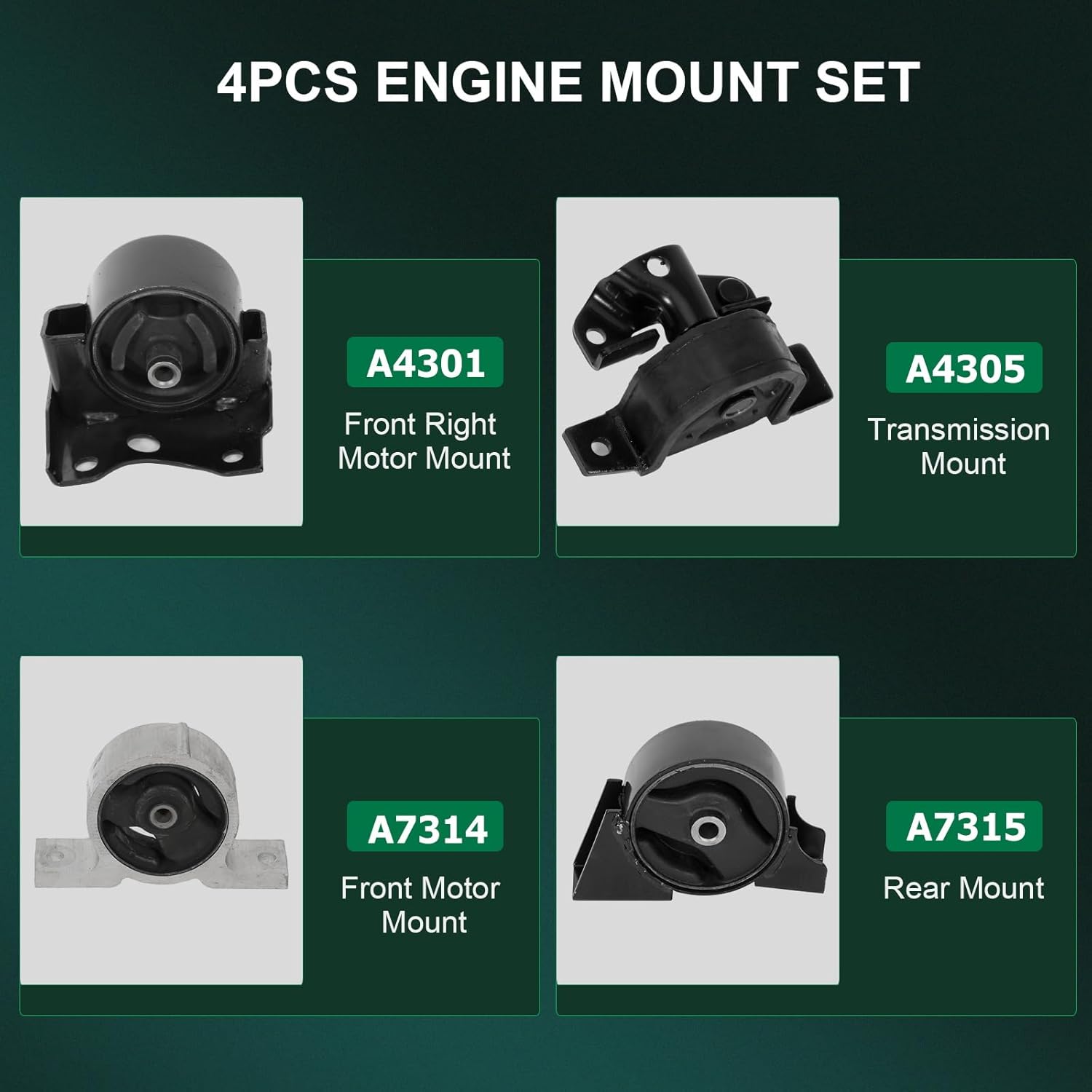 | Included Components | Engine Motor Mount Transmission Mount Set |