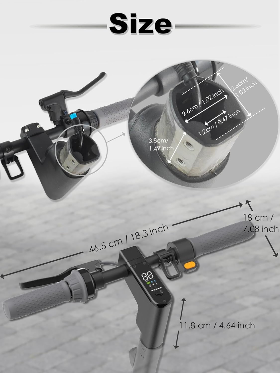 Specifications:Material: ABSColor: BlackSize: 480x180x120mm/18.86×7.08×4.72"Packing method: CartonSuitable model: Ninebot Max G30P/G30LPPacking List:1×Pair of silicone handles1×Display instrument1×Accelerator1×Headlight1×Hand brake1x Crossbar1x Handle Fixing BlockPlase note that:1.Compatible with original Ninebot MAX G30P/ G30LP models. Mounting it on the Max G30P is a little bit difficult, it is recommended that something soft and of a certain thickness is padded on the handlebar kit and it is tapped on it with several times until the handlebar kit is fully mounted in2.Regarding the speed issue, if you connect the wires for the first time and find that the speed is not 25km/h, disconnecting the wires and reconnecting them will solve the problem3.If you connect the wires and find that it can only turn on/off, can't change the speed setting, and can't turn on/off the lights, please leave us a message and we'll troubleshoot the cause and fix it for you.