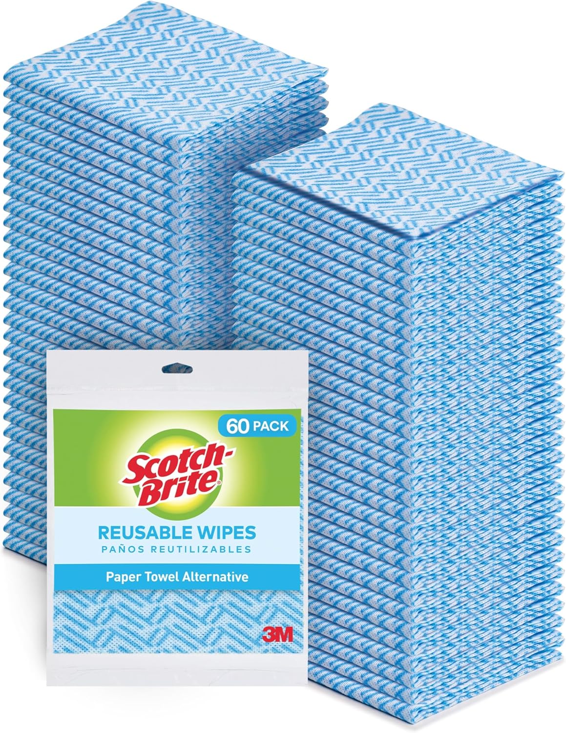 Scotch-Brite® Reusable Wipes are a great alternative to paper towels. These longer lasting and non-scratch wipes can be used to wipe, clean, polish, and dust all around the home. More durable than conventional paper towels, these wipes rinse easy and dry quickly. Alternatively, they can be machine washed and reused up to 10 times.