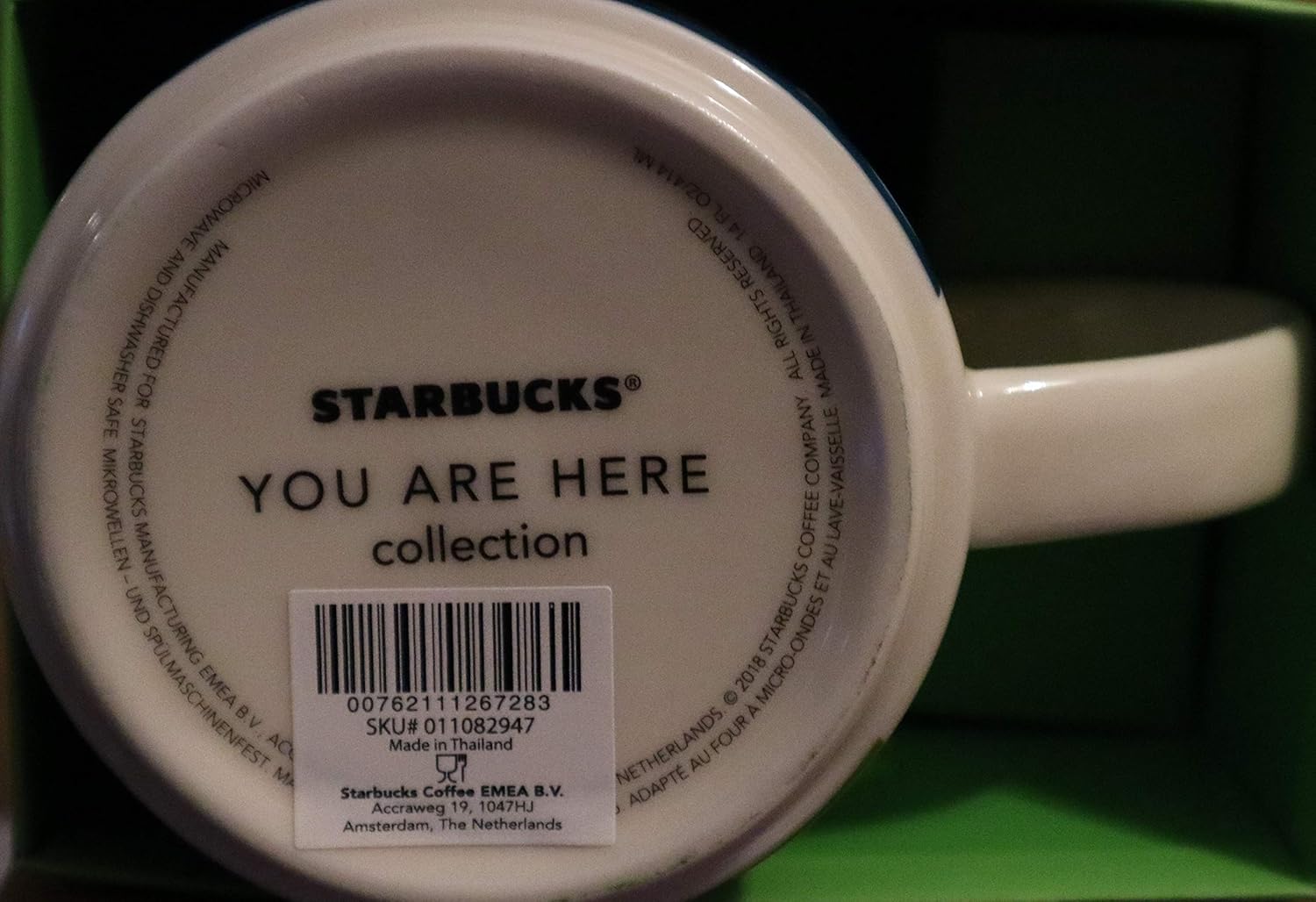 Scotland icons in a green and purple color scheme adorn this ceramic handled mug from Starbucks "You Are Here" collection.