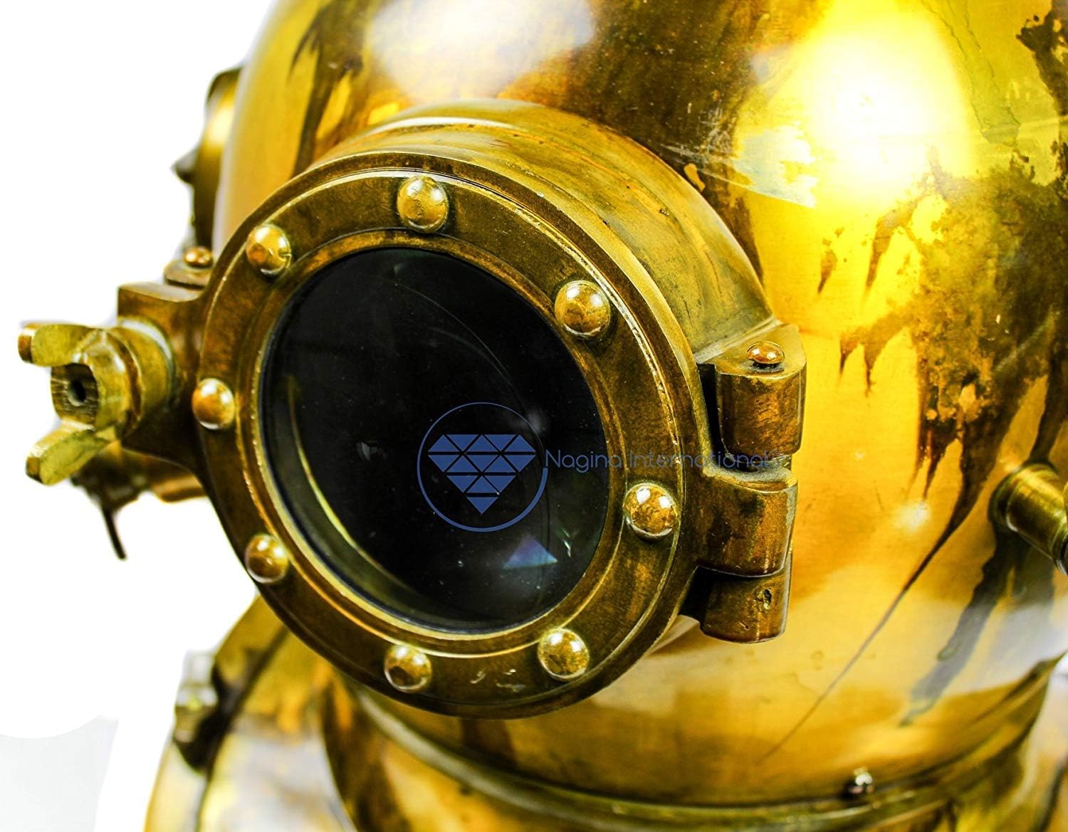 sold by maxnauticalmart & manufacturing by max engineering enterprises scuba helmet 18" nautical diving helmet diving helmet Brand New (Factory Direct) | Exclusive Kitchen & Home Decor Gits & Collectibles By maxnauticalmart divers helmet Antique Finished | Comes With Adjustable Screws In the Neck 100% Quality& Satisfaction | Return Easily & Immediately If Not Satisfied made of iron steel decorative diving helmet scuba helmet Replice Of Sea Diving Helmet | Embossed (US NAVY MARK V)