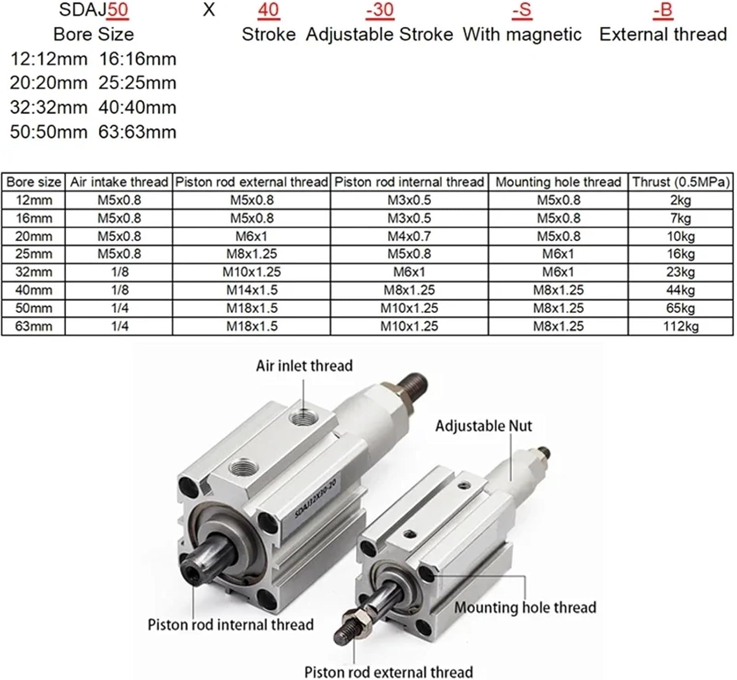 Air Tool Parts & AccessoriesSDAJ20/25/32/40/50/63mm Bore Double Acting Piston Tools Aluminum Alloy Adjustable Stroke Compact Thin Air Pneumatic Cylinder