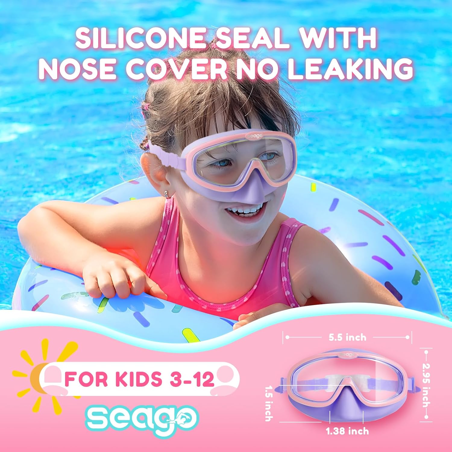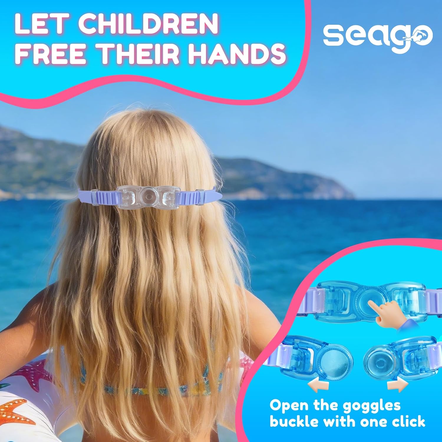 Seago Kids Swim Goggles 4 Pack for 3-12, Anti-Fog UV Protection Clear Wide View No Leaking